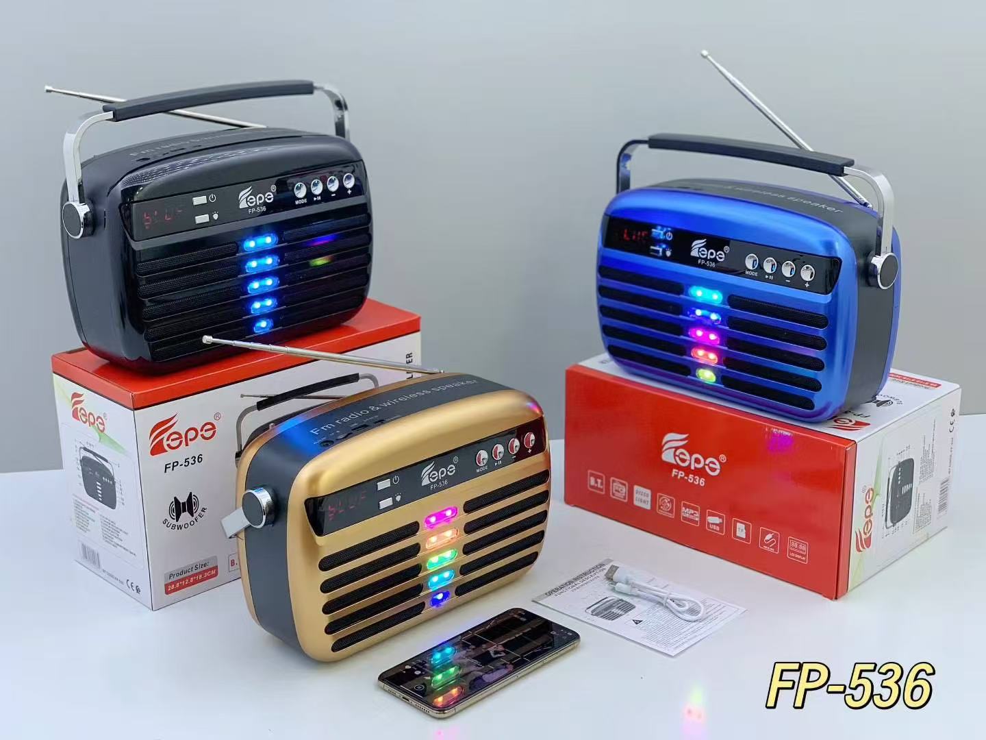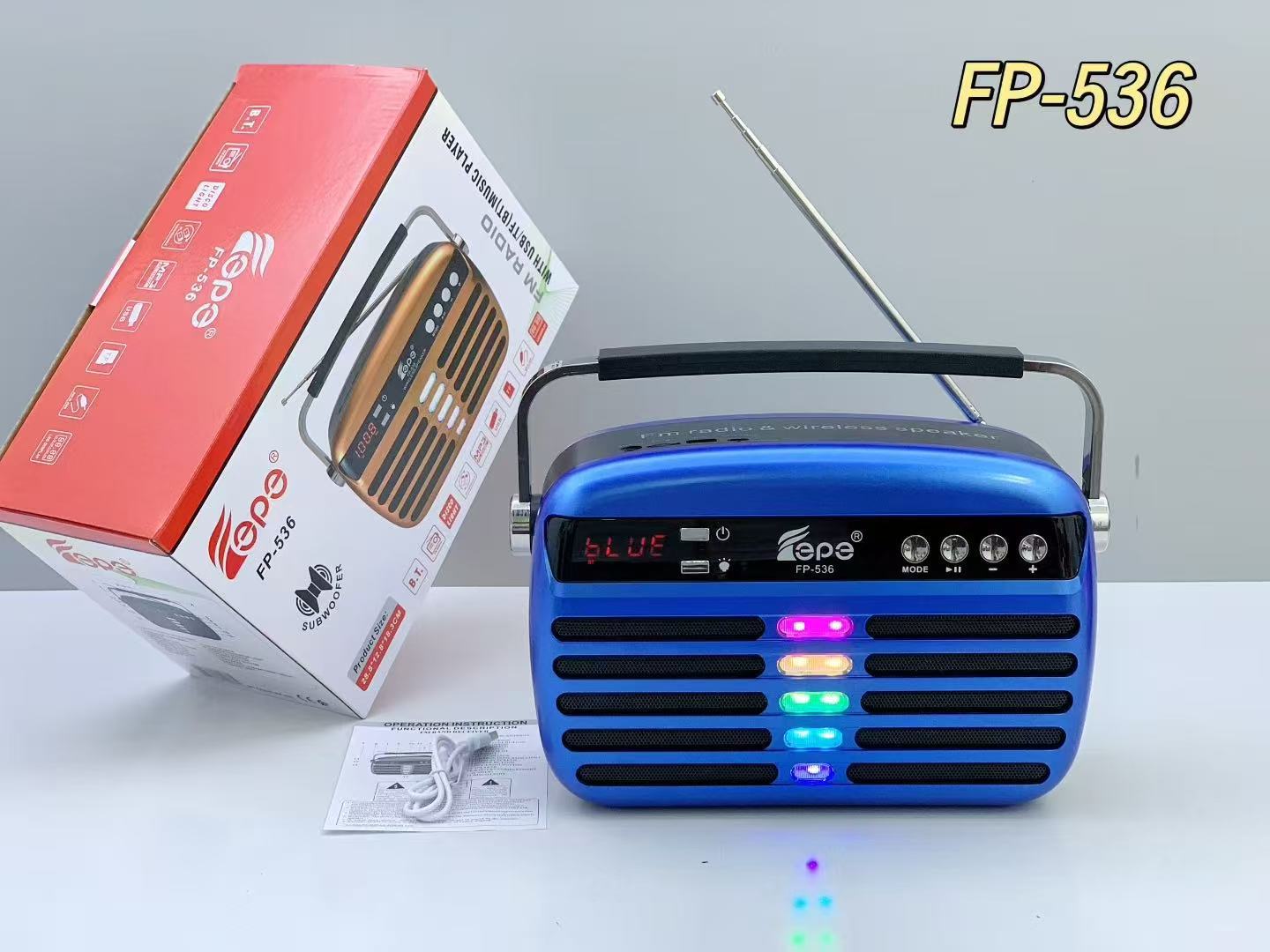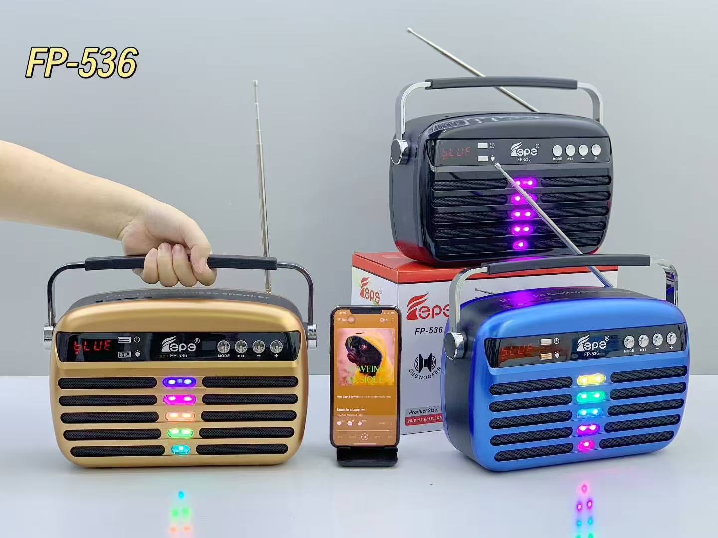 FP-536 跨境蓝牙音箱便携手提家用LED显示屏户外低音炮天线收音机