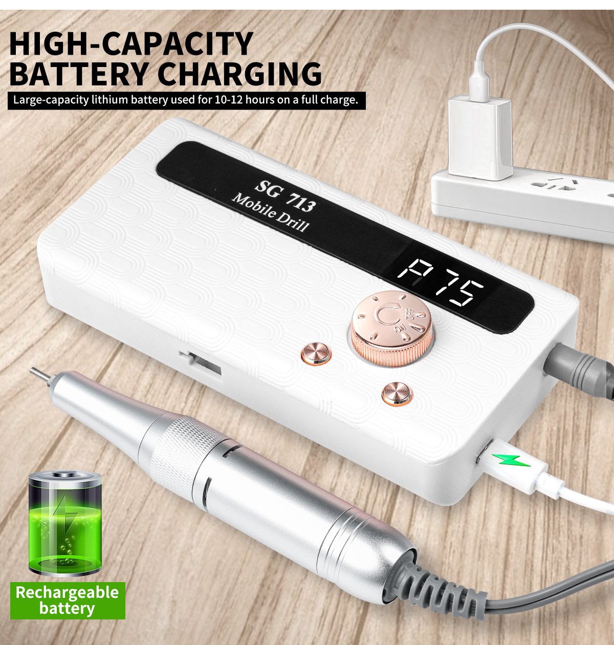 新款SG713美甲打磨机美甲店专用充电磨甲器修甲卸甲抛光去死皮机