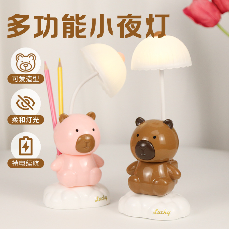 多功能卡通卡皮巴拉台灯USB充电便携式笔筒台灯带铅笔削LED小夜灯