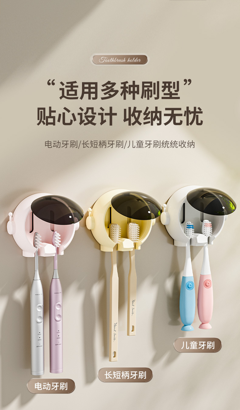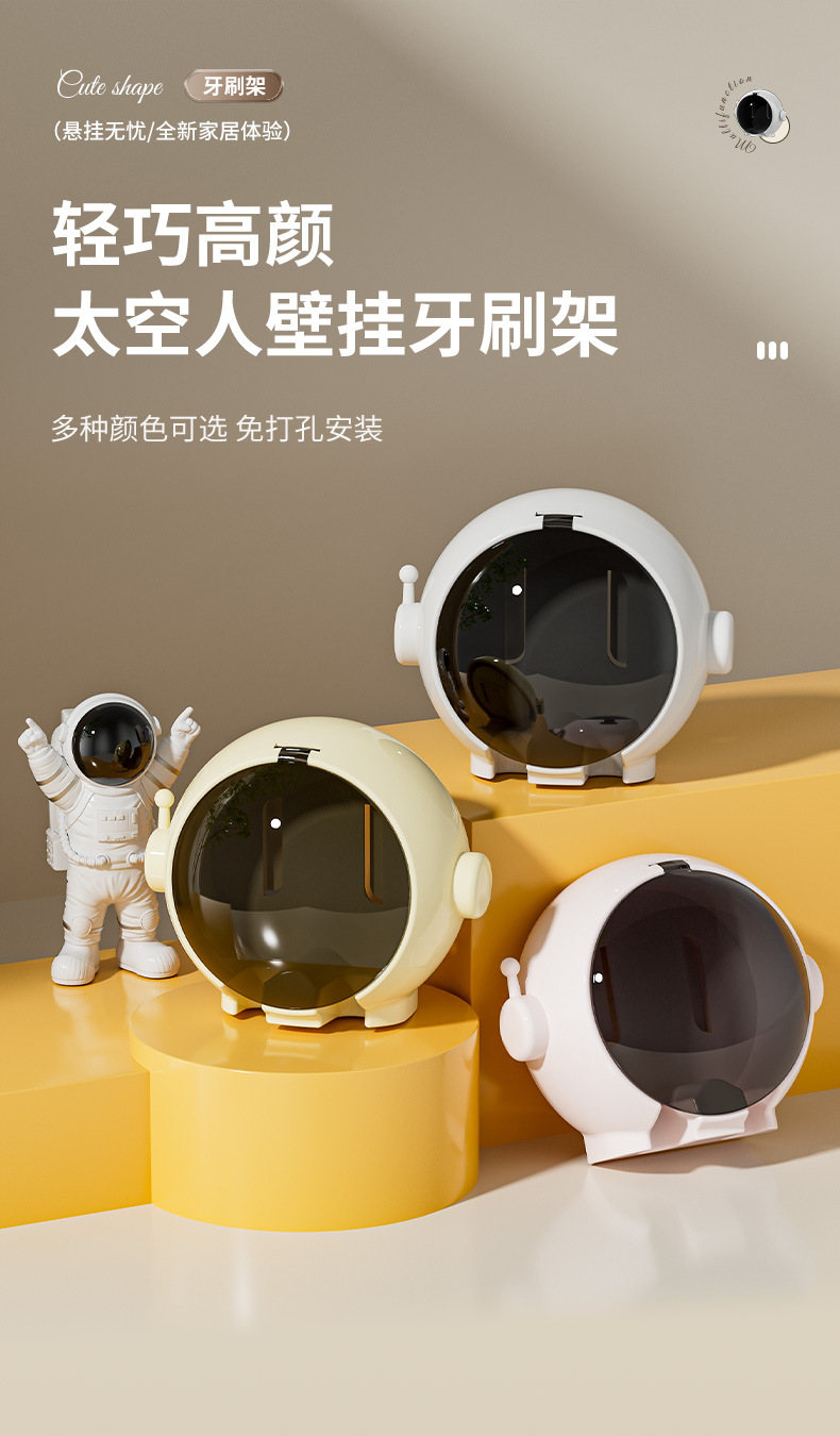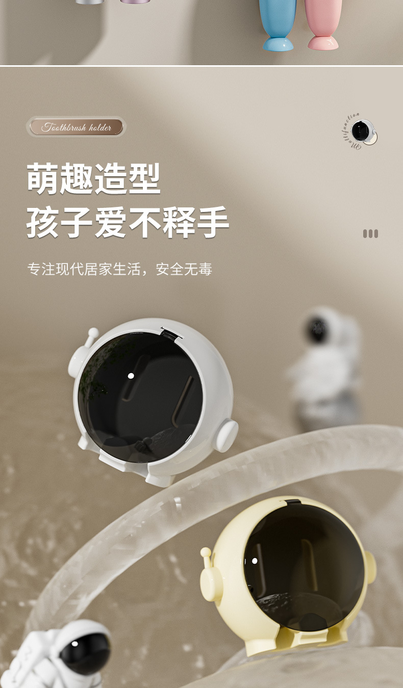 太空人牙刷架免打孔浴室电动牙刷置物架新款卡通卫生间墙上牙刷架