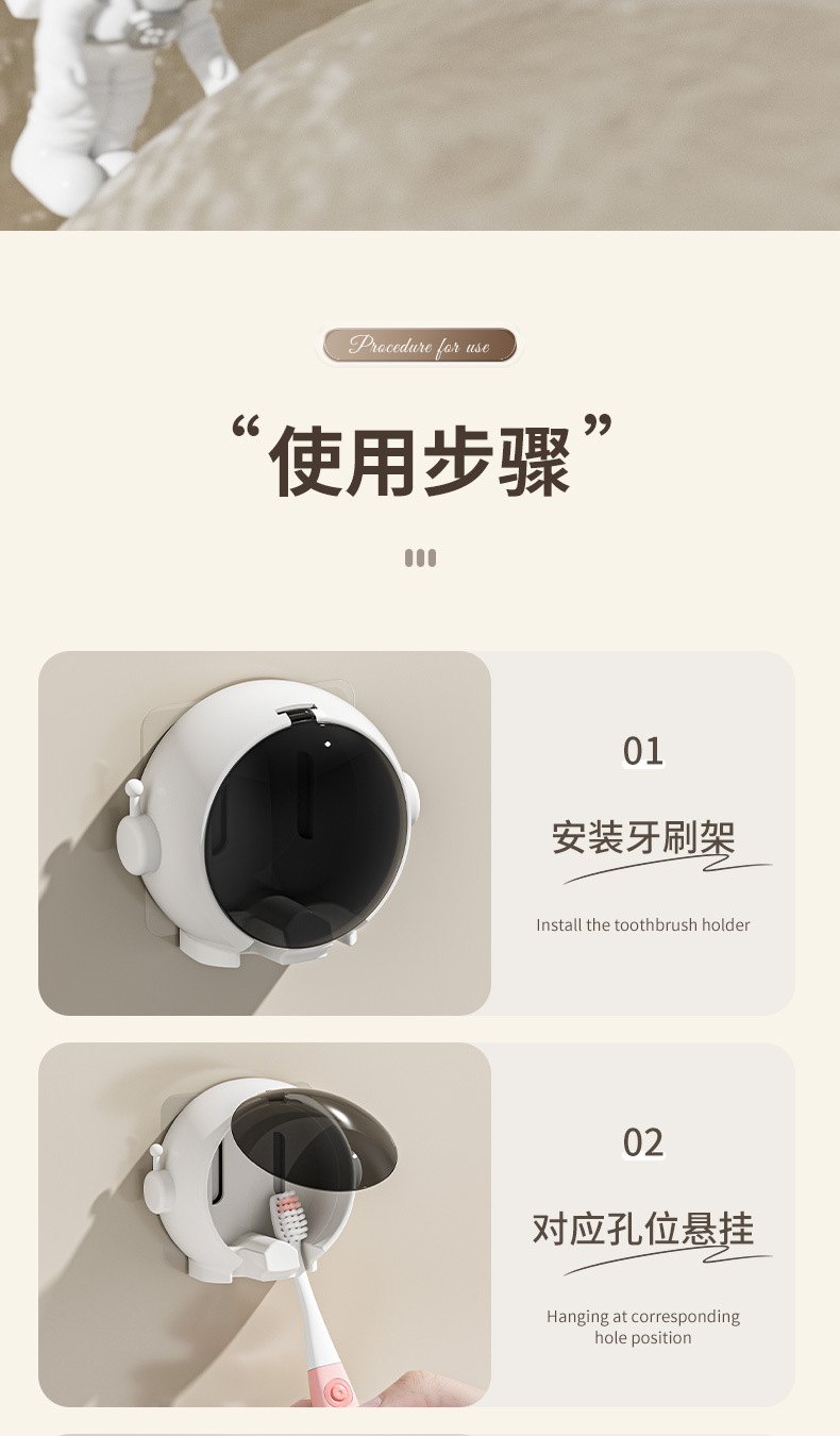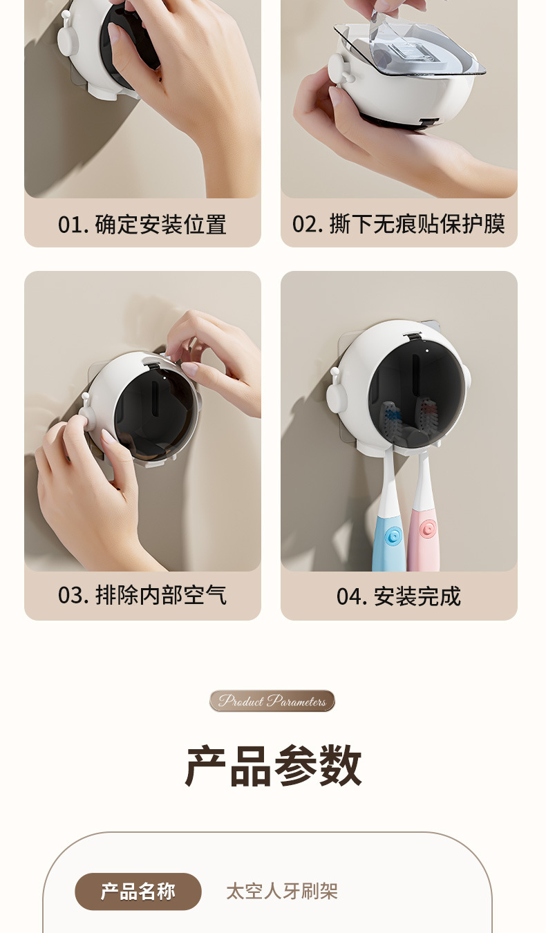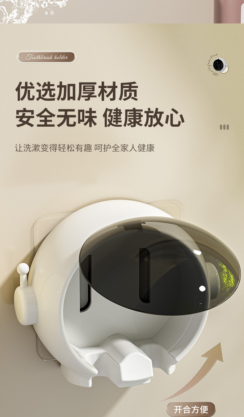 太空人牙刷架免打孔浴室电动牙刷置物架新款卡通卫生间墙上牙刷架