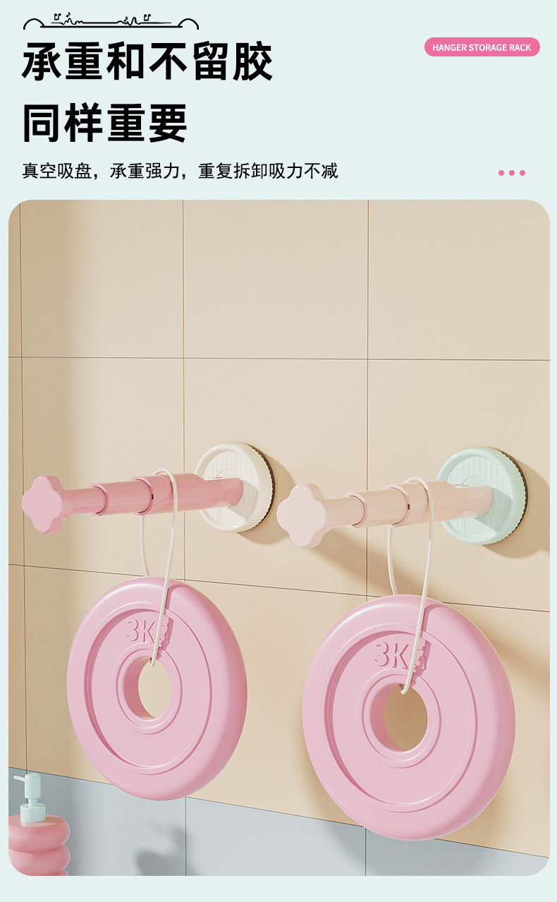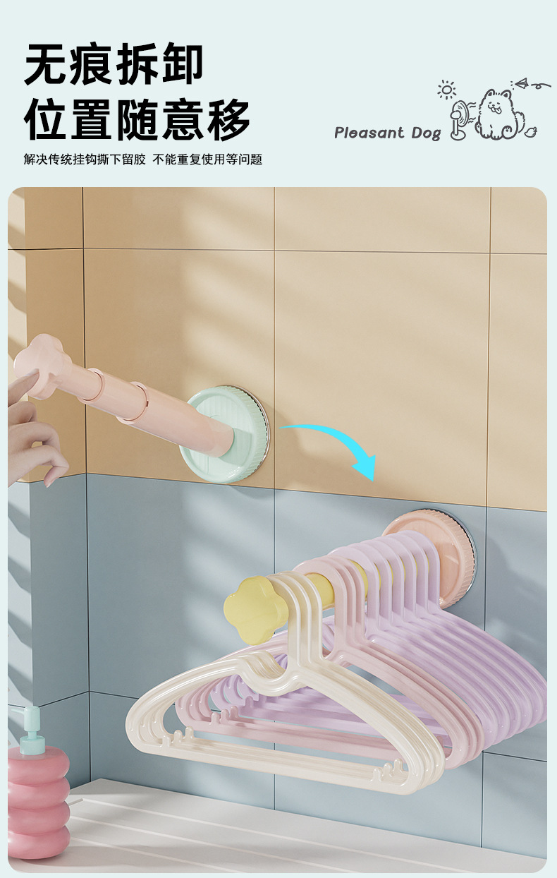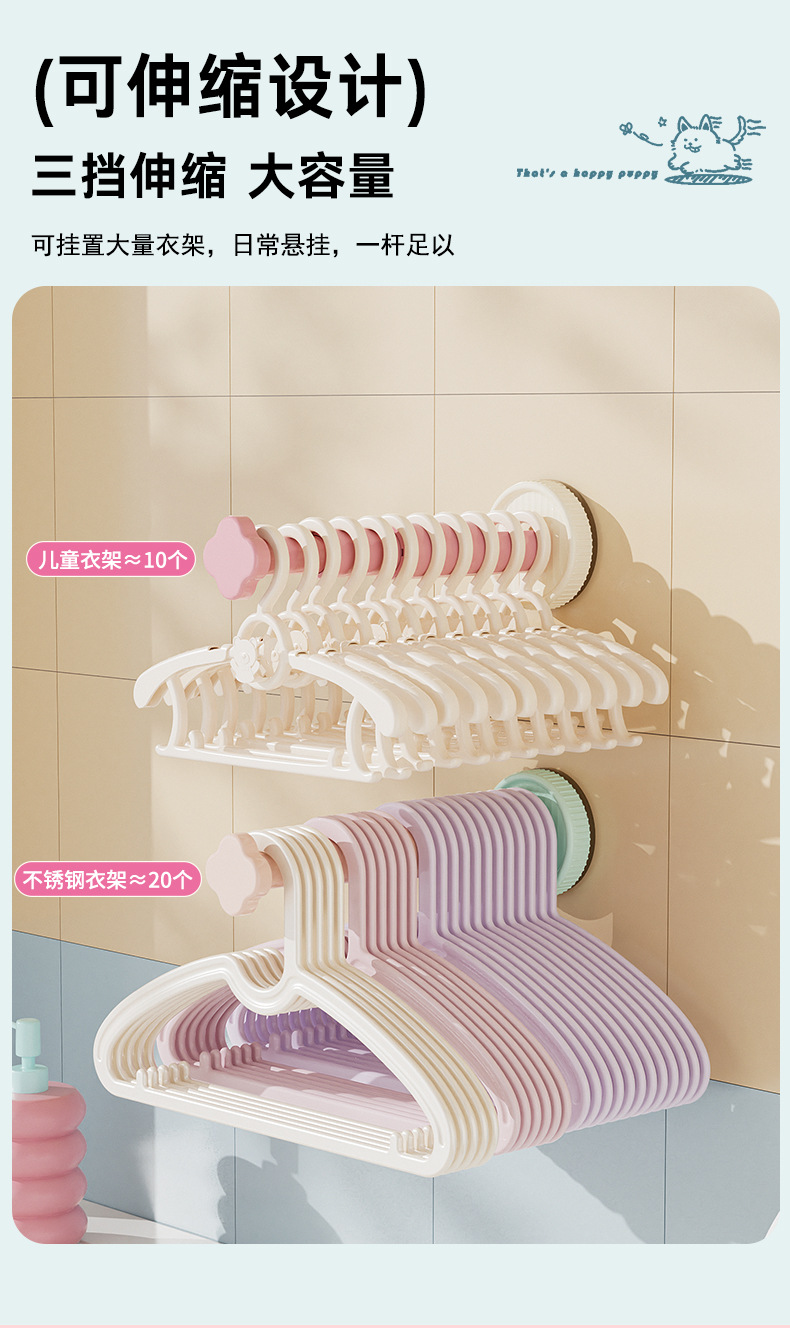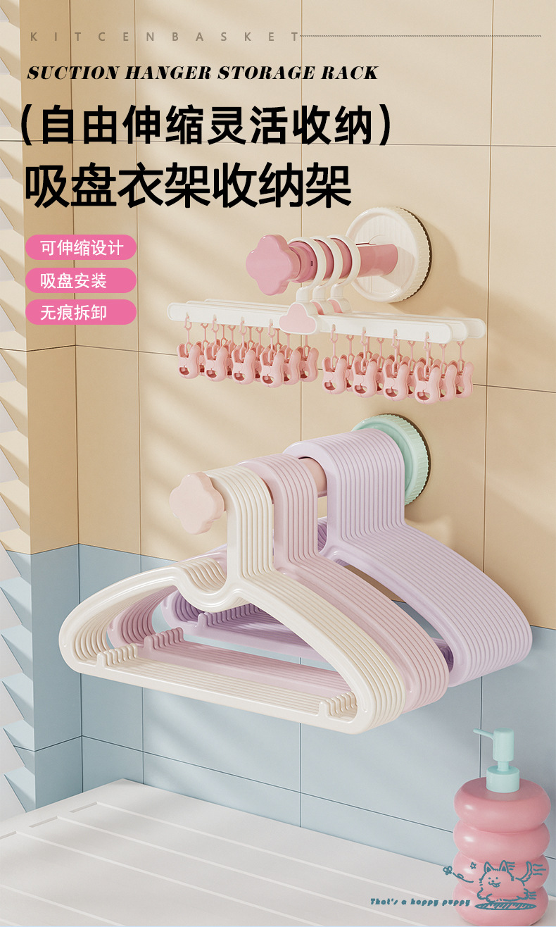 糖果色吸盘衣架收纳架免打孔墙上衣架收纳三挡可调节衣架收纳神器