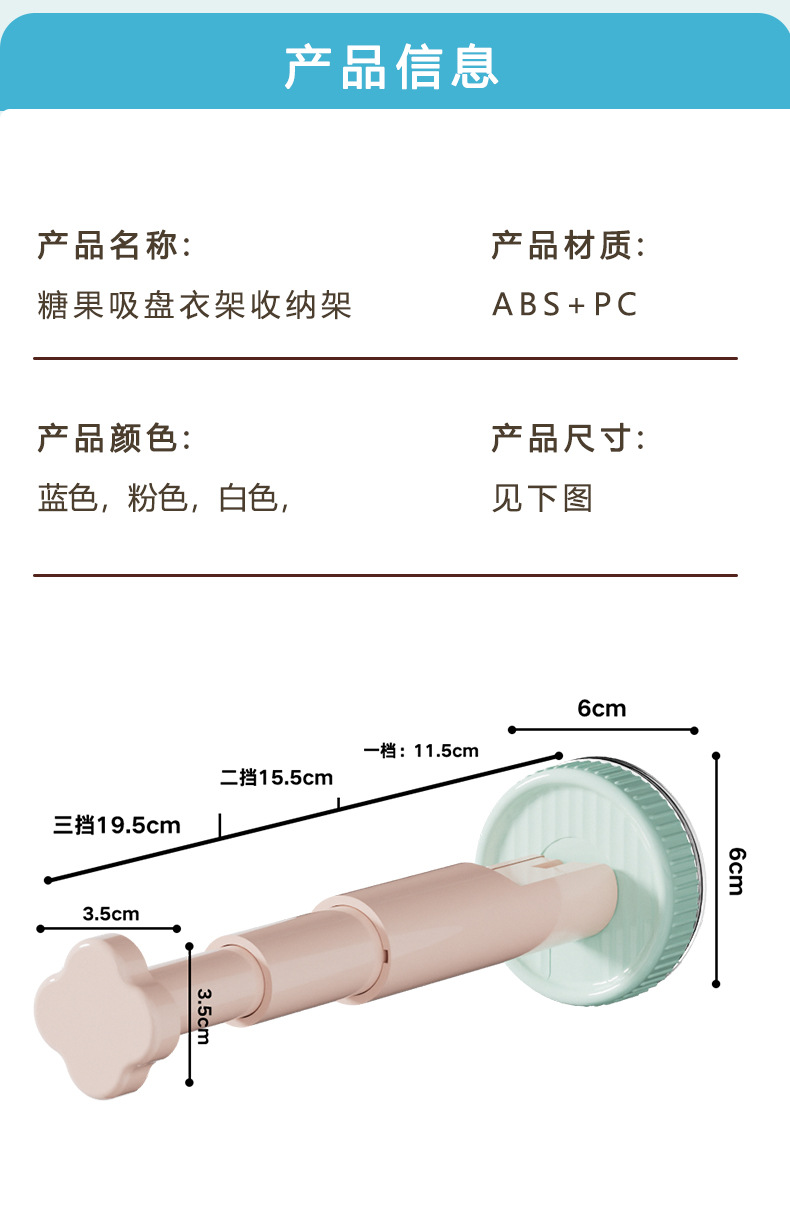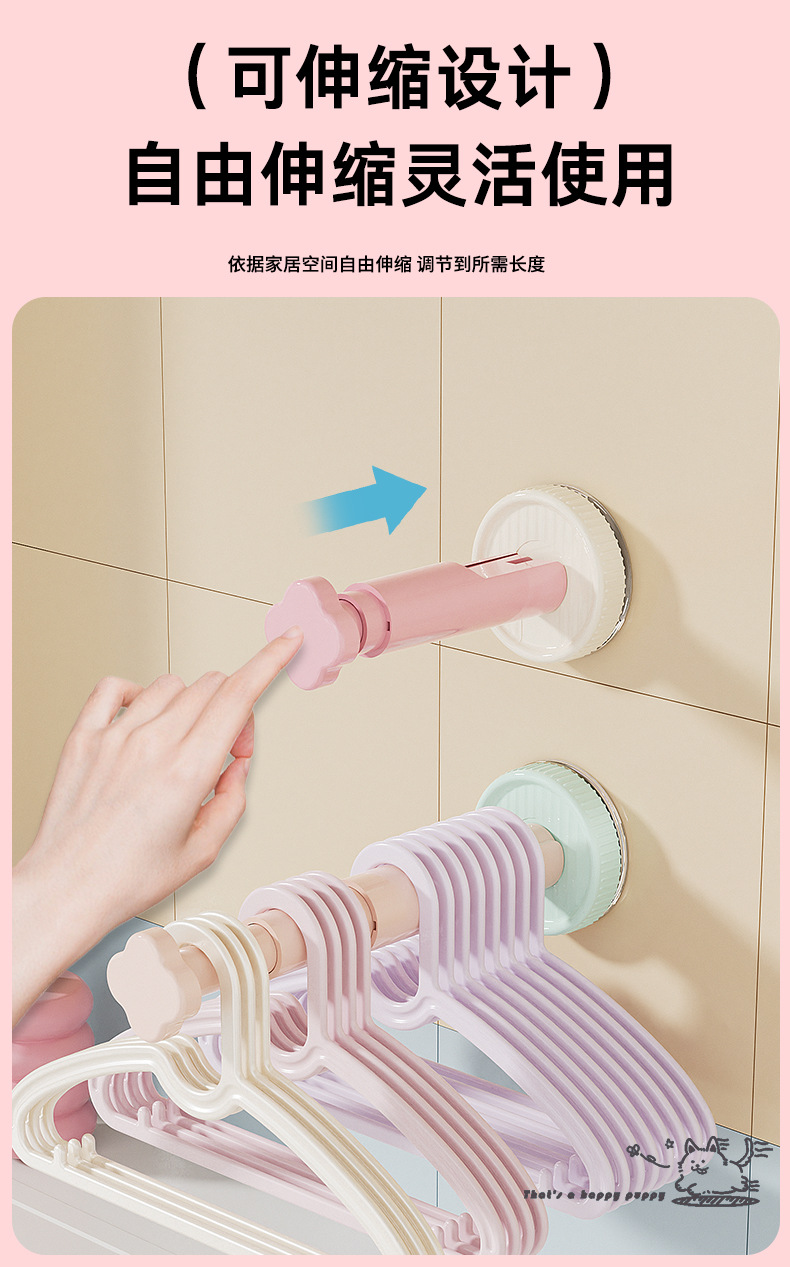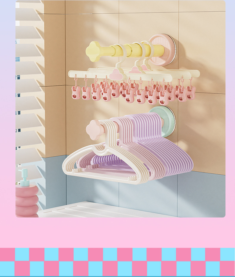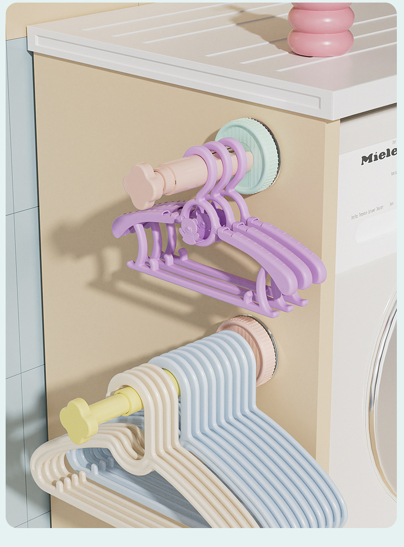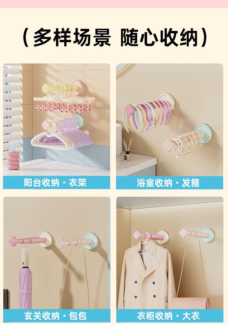 糖果色吸盘衣架收纳架免打孔墙上衣架收纳三挡可调节衣架收纳神器