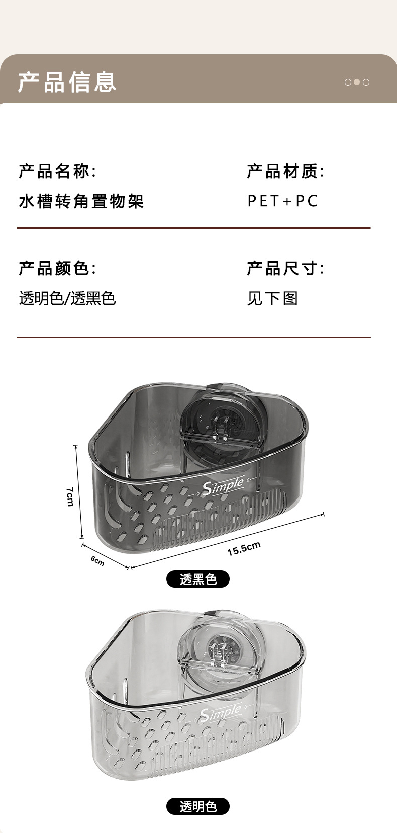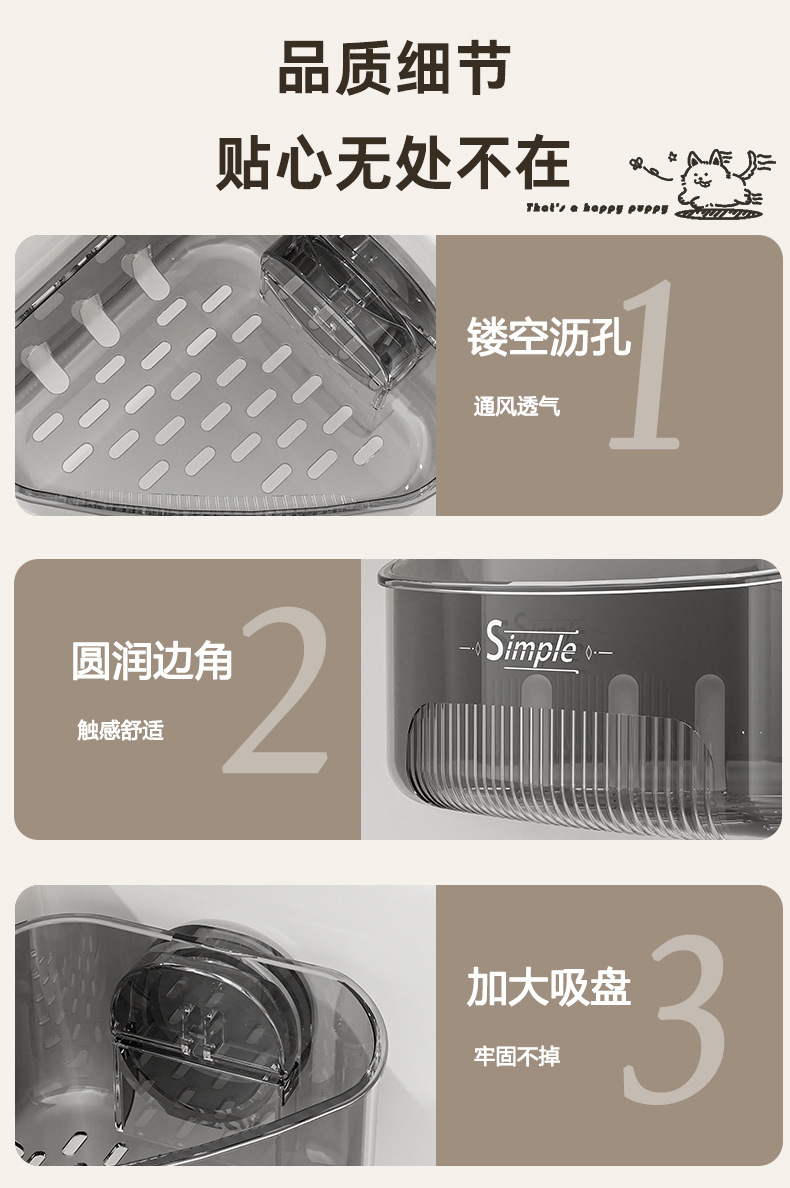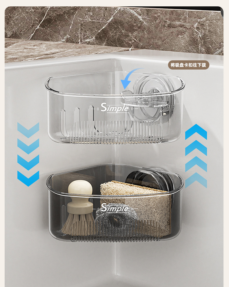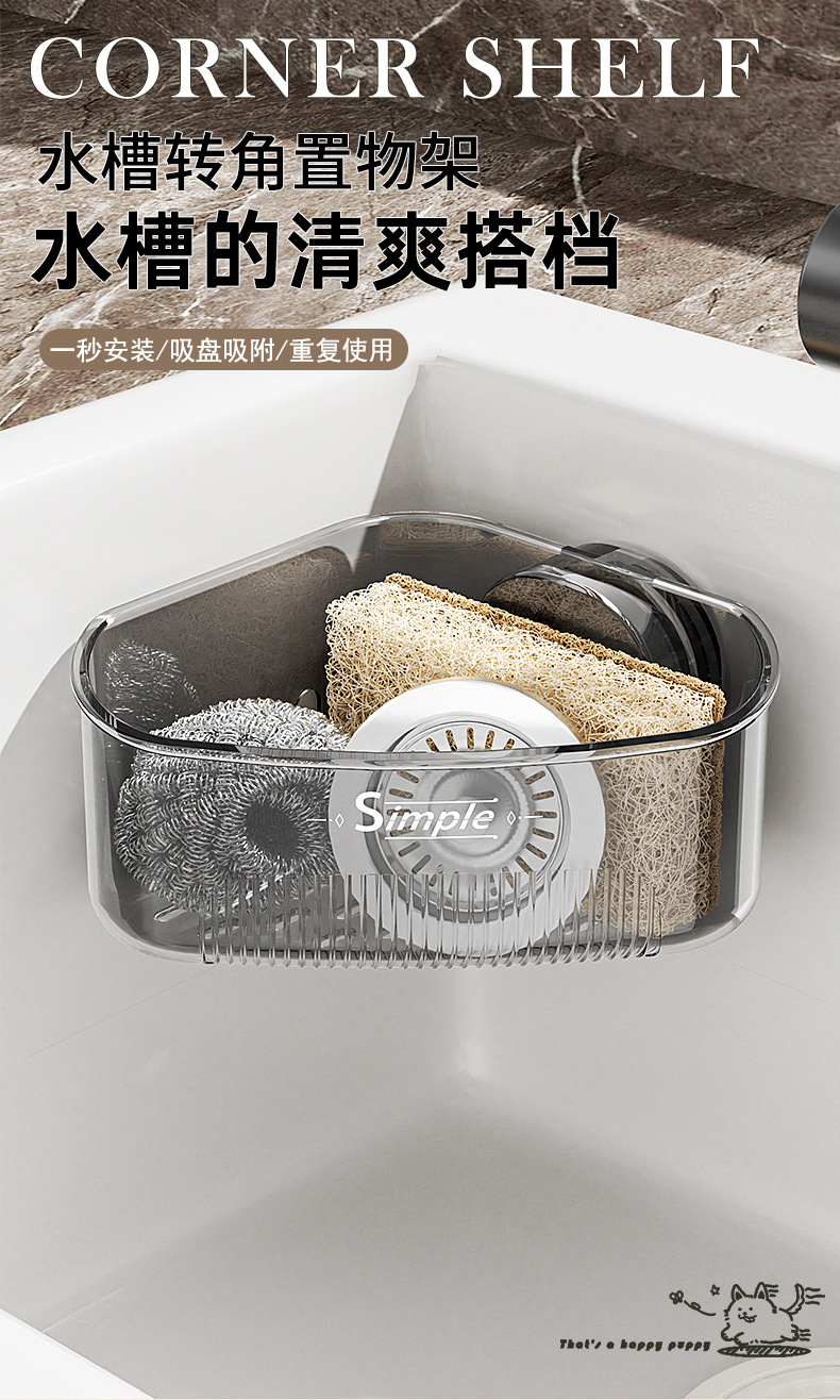 水槽内转角置物架厨房水槽海绵抹布沥水架家用轻奢吸盘三角置物架