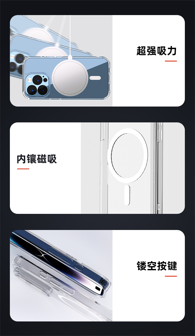 苹果16磁吸手机壳iPhone14透明磁吸N52内镶磁铁苹果15磁吸手机壳