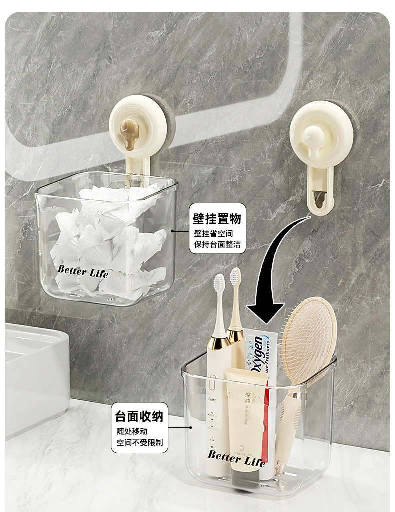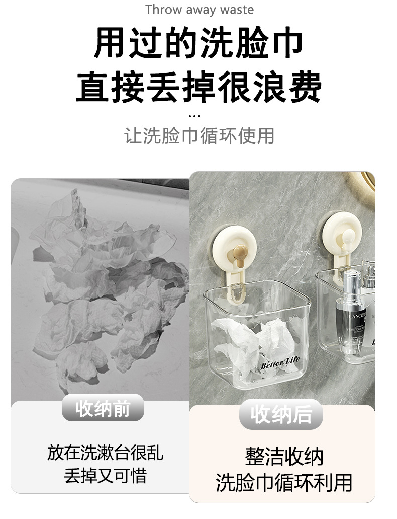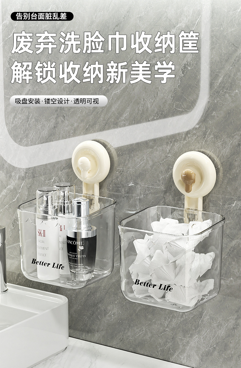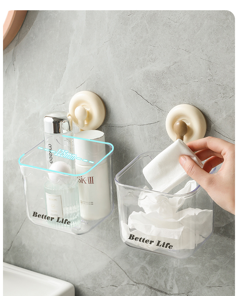 吸盘洗脸巾收纳盒卫生间浴室透明壁挂收纳盒免打孔化妆品收纳盒