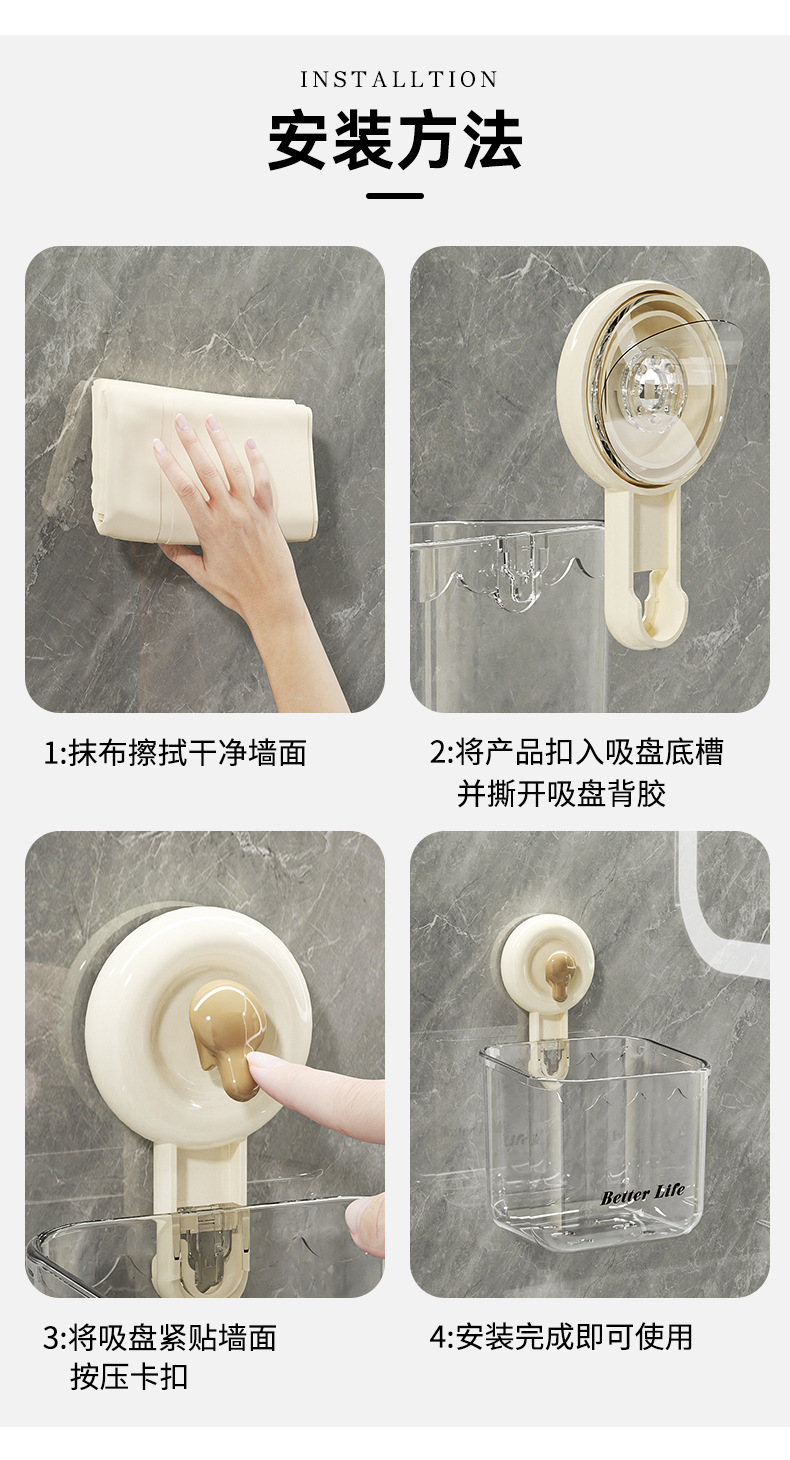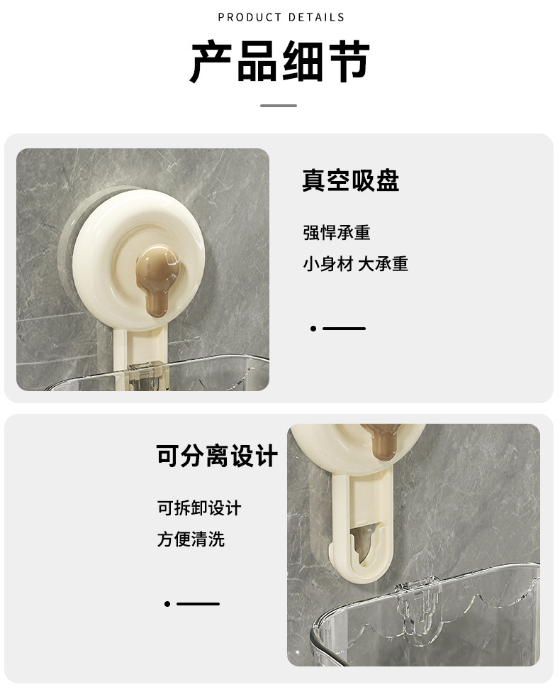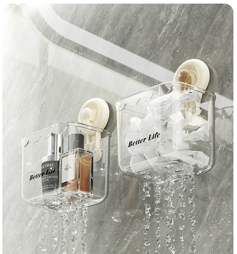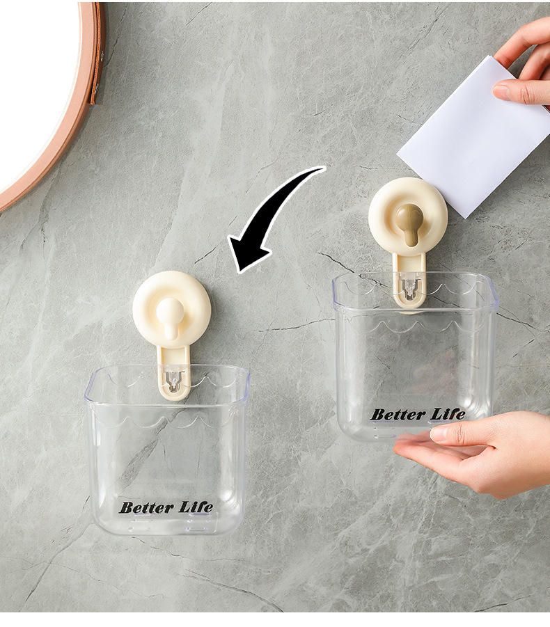 吸盘洗脸巾收纳盒卫生间浴室透明壁挂收纳盒免打孔化妆品收纳盒