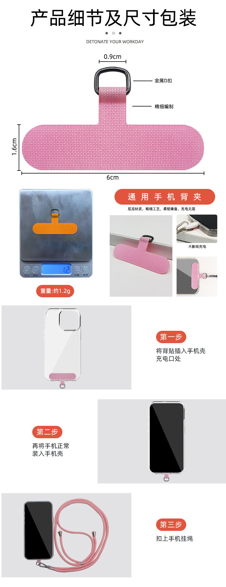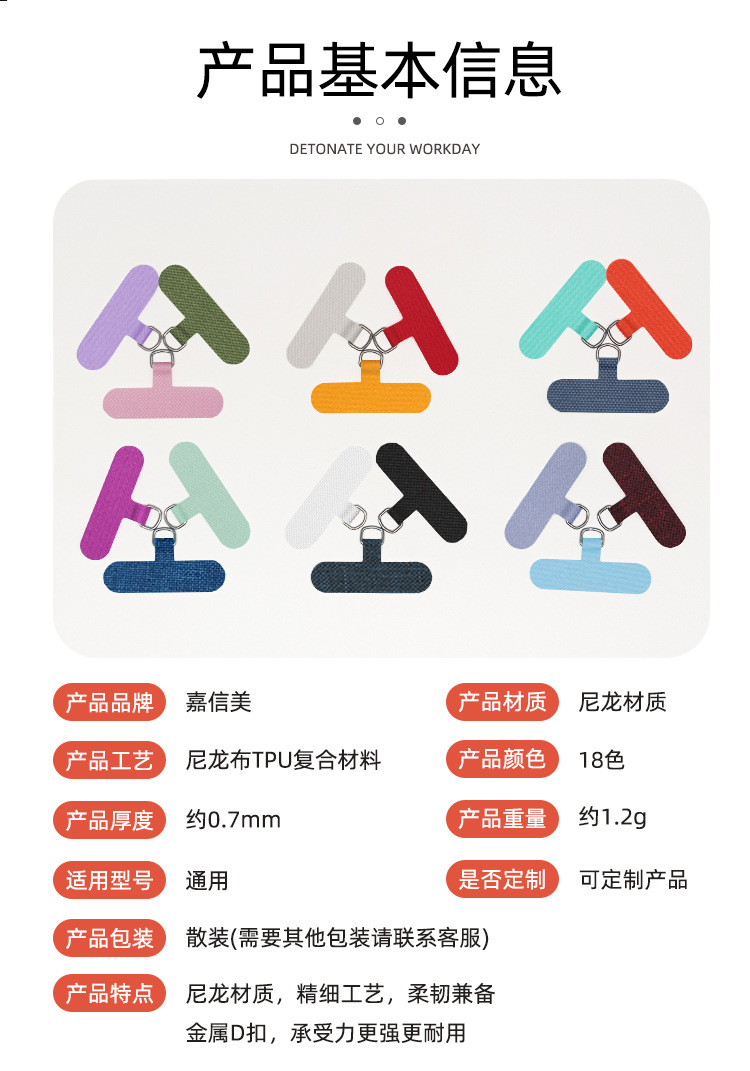 手机垫片手机挂绳夹片挂饰多巴胺背贴尼龙手机垫片手机挂绳连接片