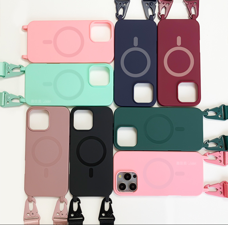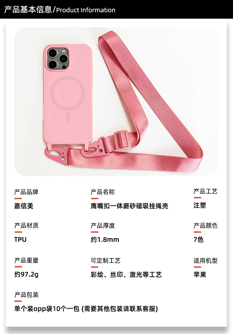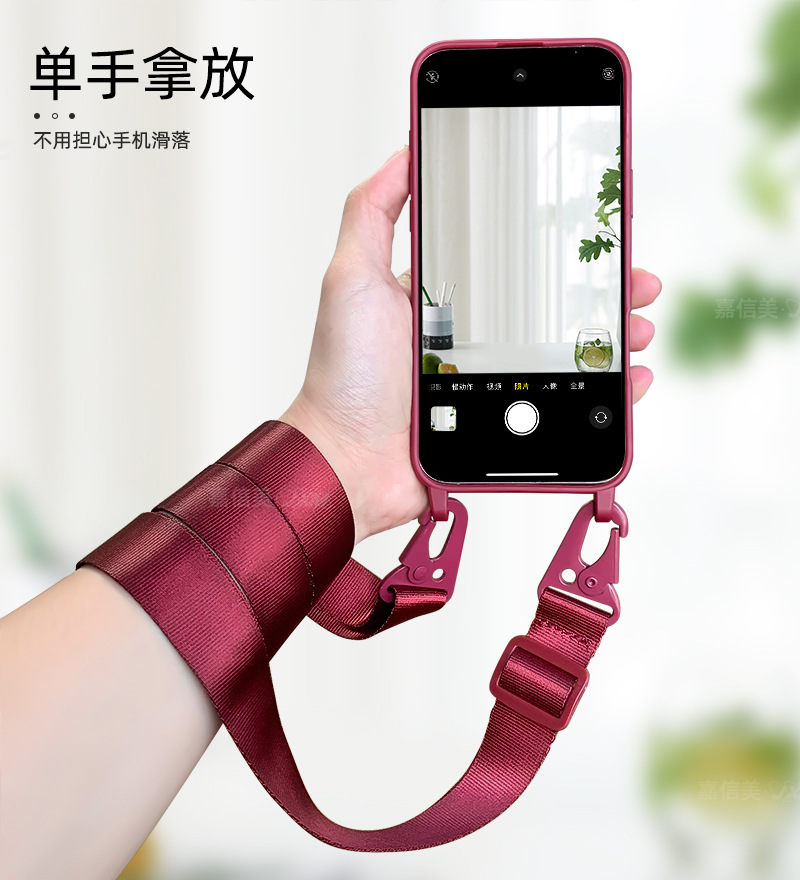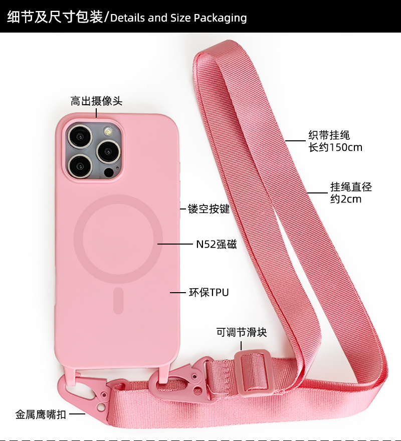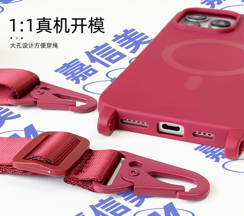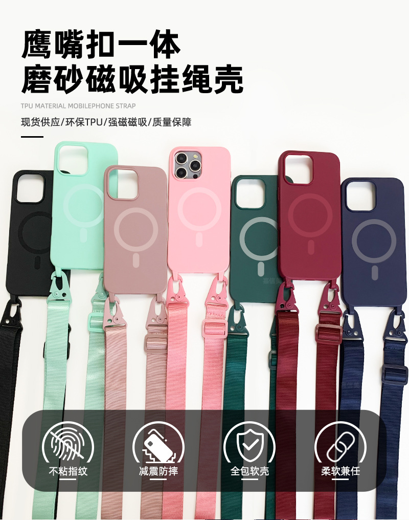苹果16一体磁吸挂绳手机壳苹果15鹰嘴扣织带挂绳苹果14斜挎手机壳