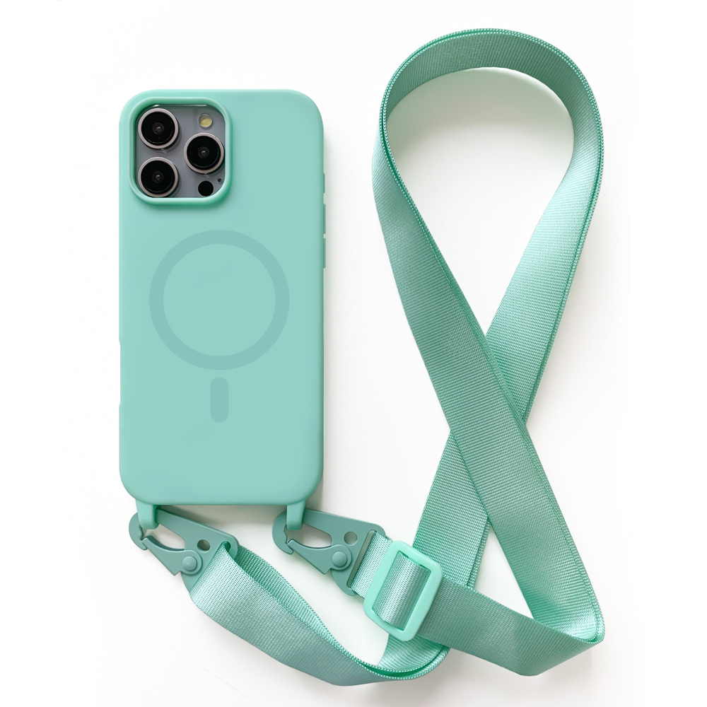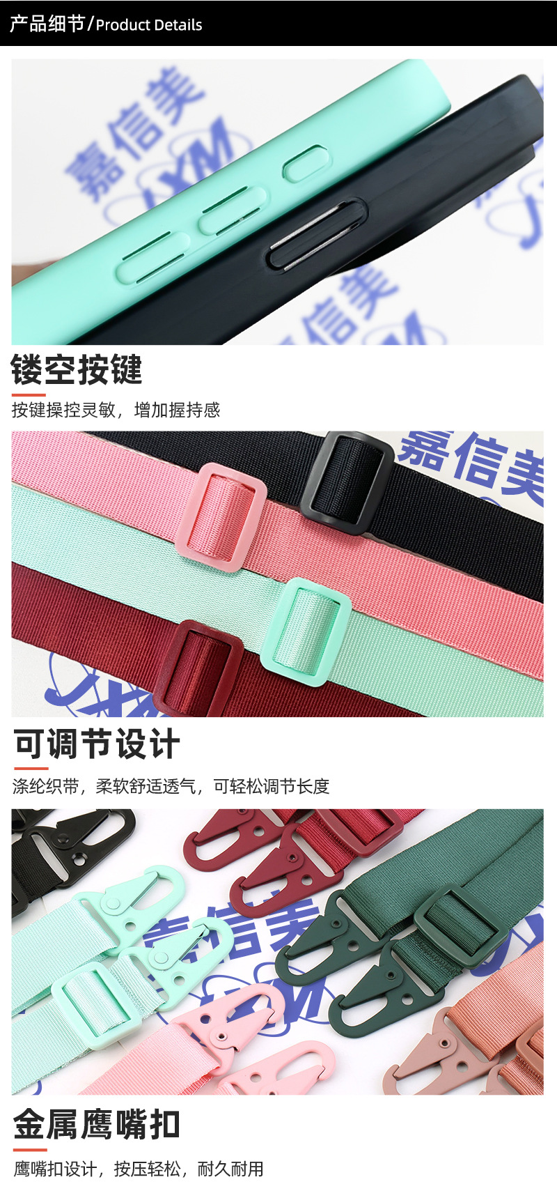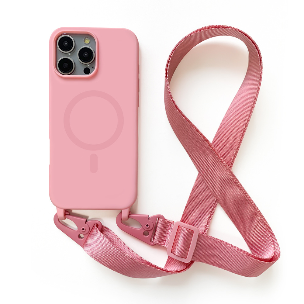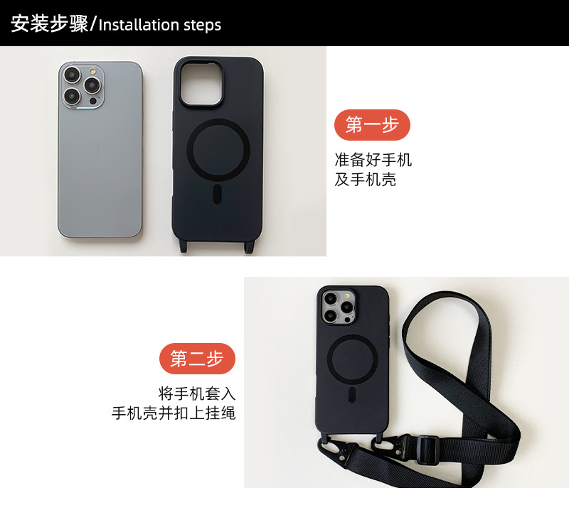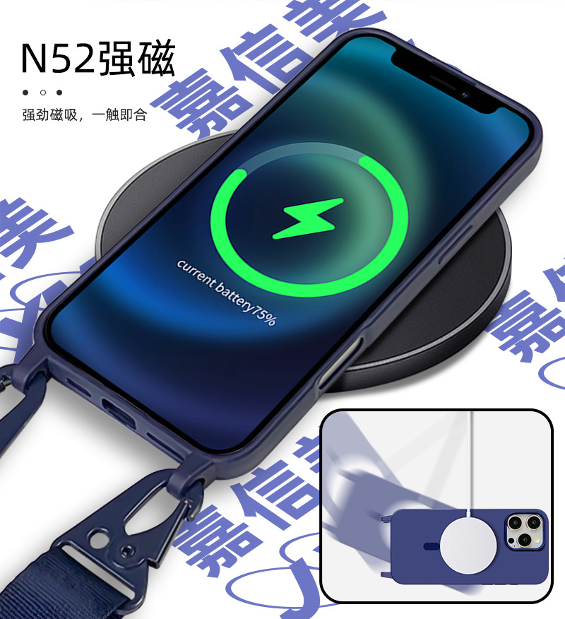 苹果16一体磁吸挂绳手机壳苹果15鹰嘴扣织带挂绳苹果14斜挎手机壳