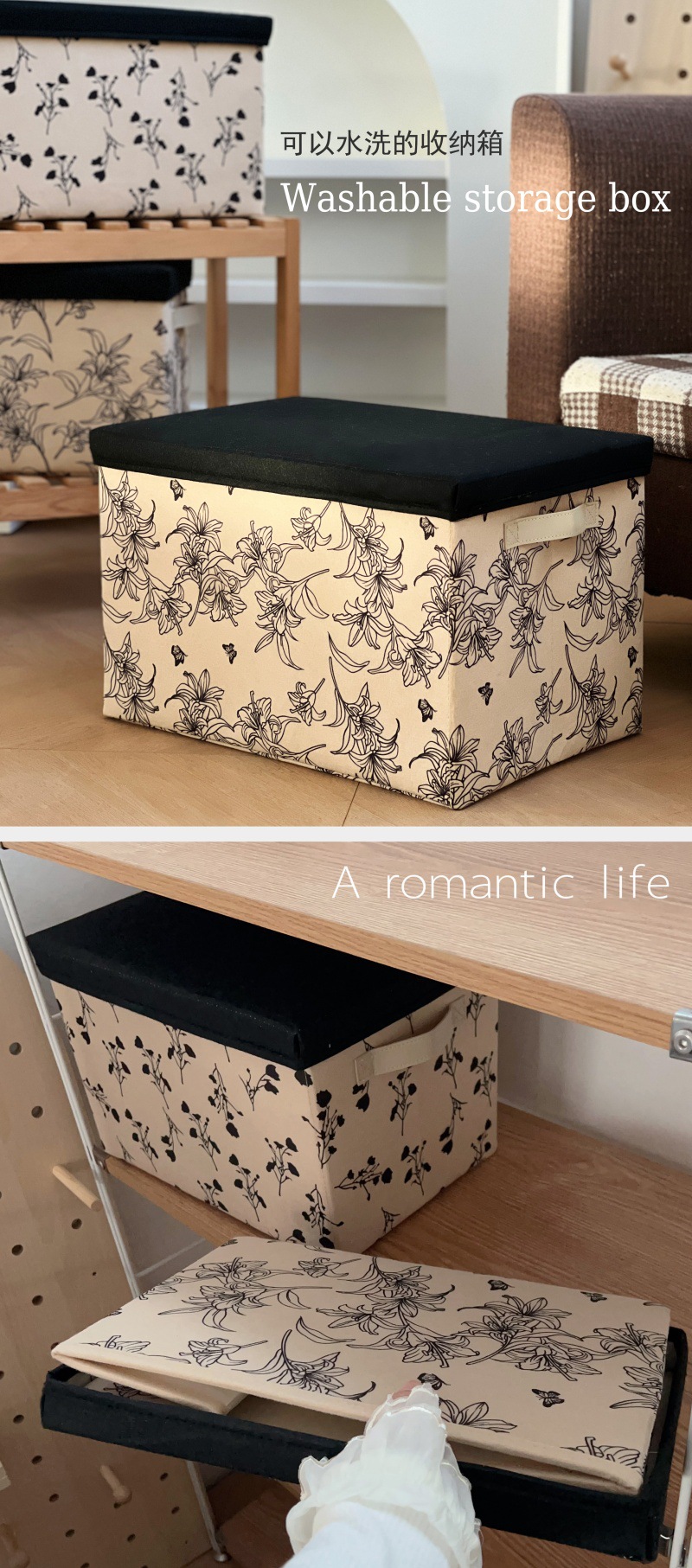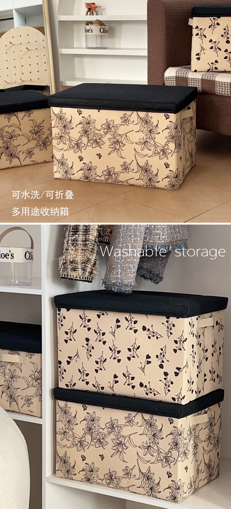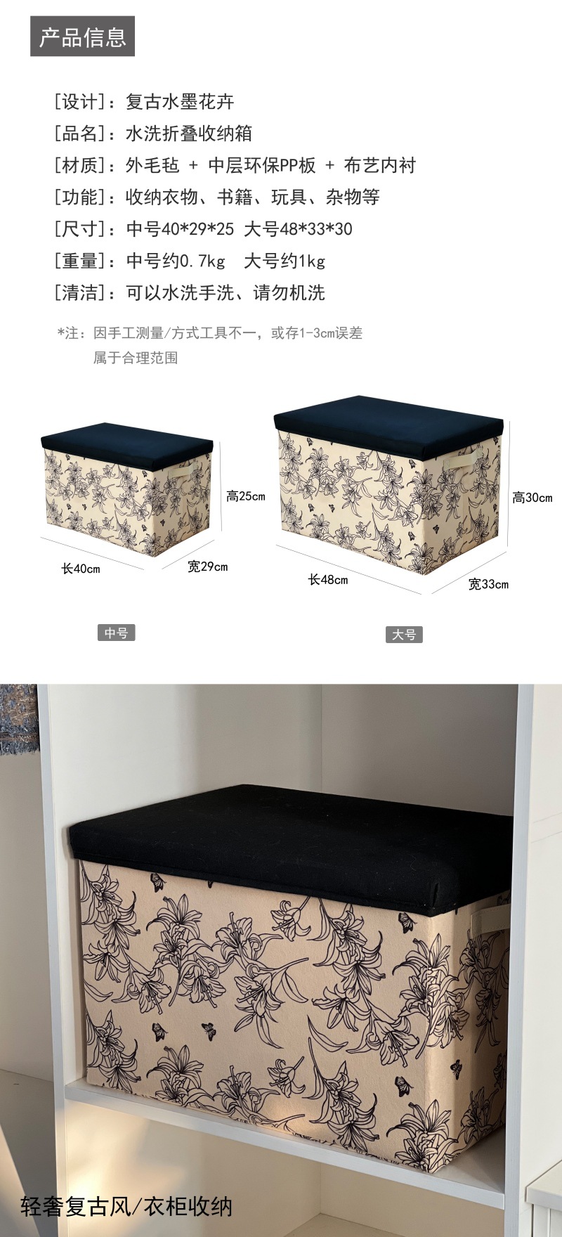 水墨花可水洗折叠衣服收纳箱无异味衣物整理带盖车载后备箱储物盒