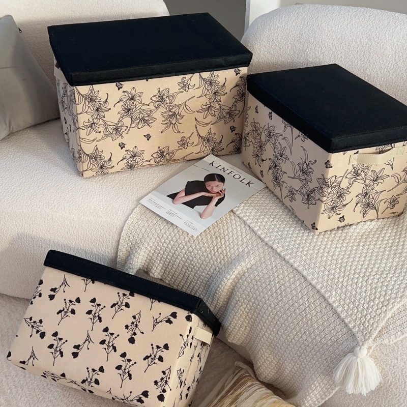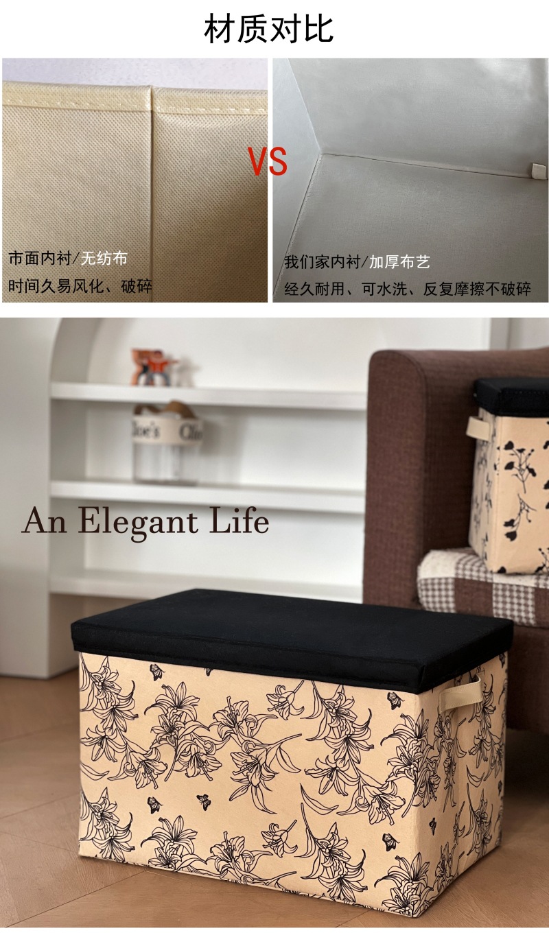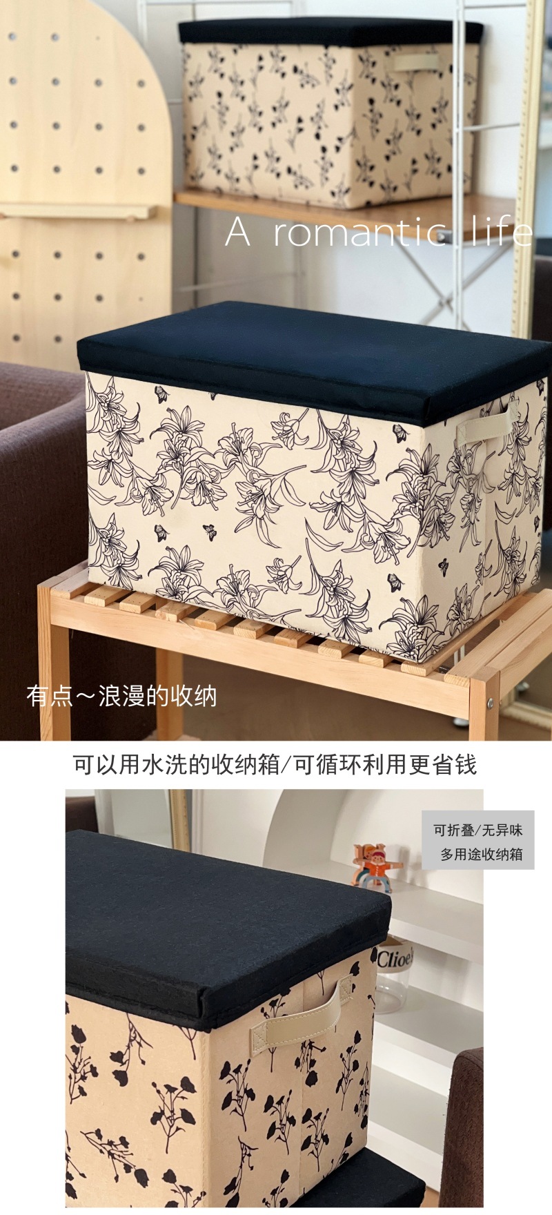 水墨花可水洗折叠衣服收纳箱无异味衣物整理带盖车载后备箱储物盒