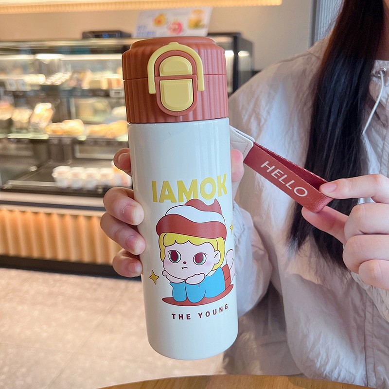 新款双饮渐变杯子316不锈钢保温杯便携提绳吸管杯水杯水礼品批发