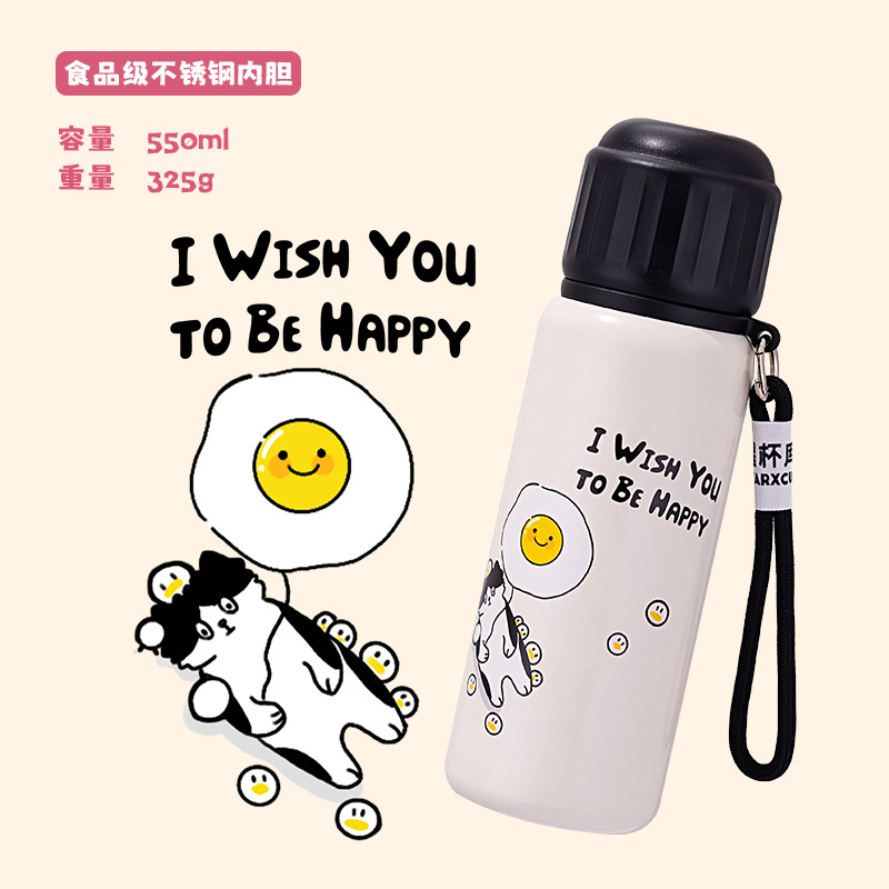 316不锈钢女颜值大容量水杯儿童可爱上学杯子趣味家族涂鸦保温杯