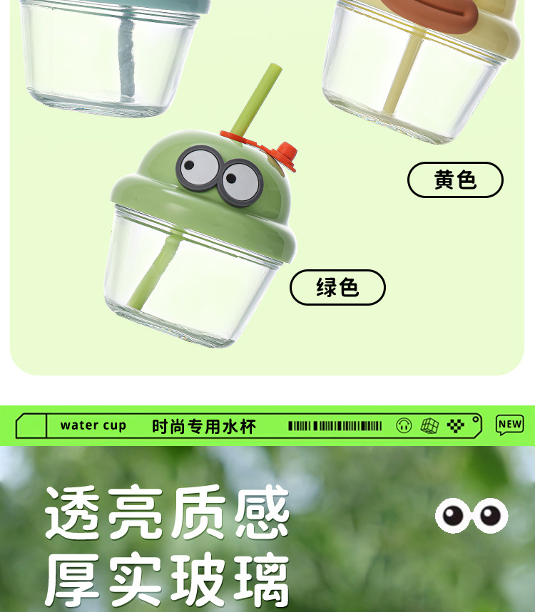 定制卡通款夏季ins墩墩杯迷你水杯玻璃杯牛奶杯高颜值胖胖吸管杯