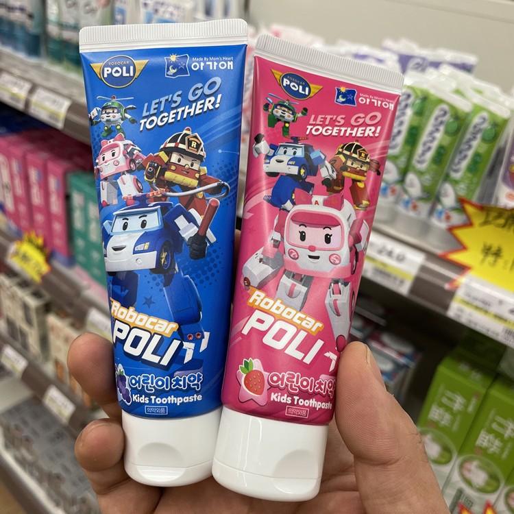 可进商超开票一般贸易韩国进口变形警车珀利儿童水果味宝宝牙膏