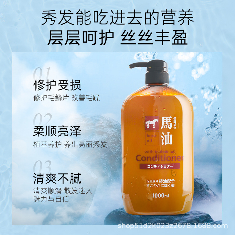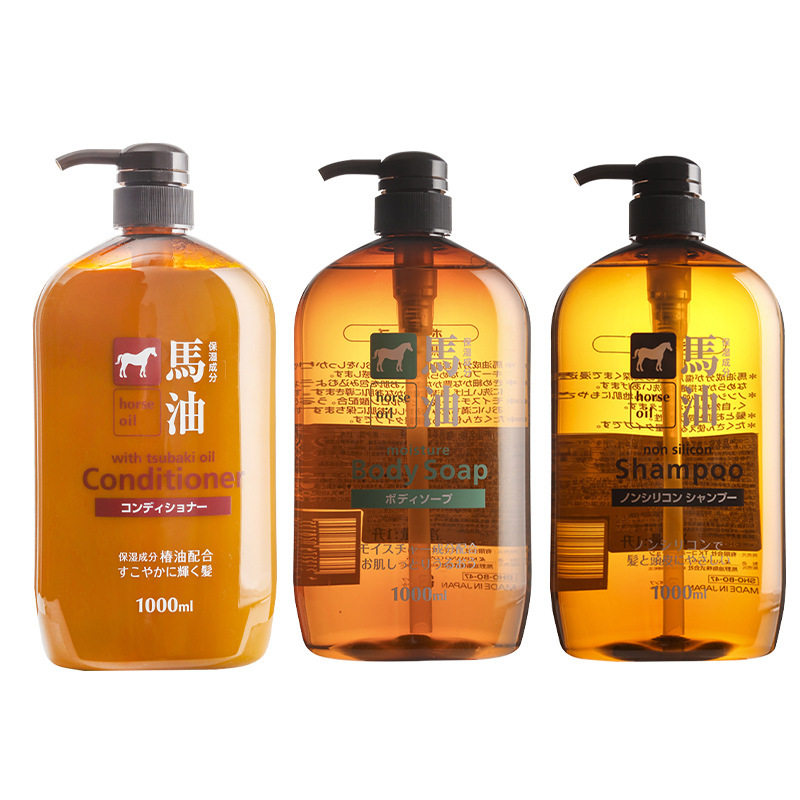 日本熊野油脂咖思美马油洗发水护发素无硅油补水保湿沐浴露1000ml