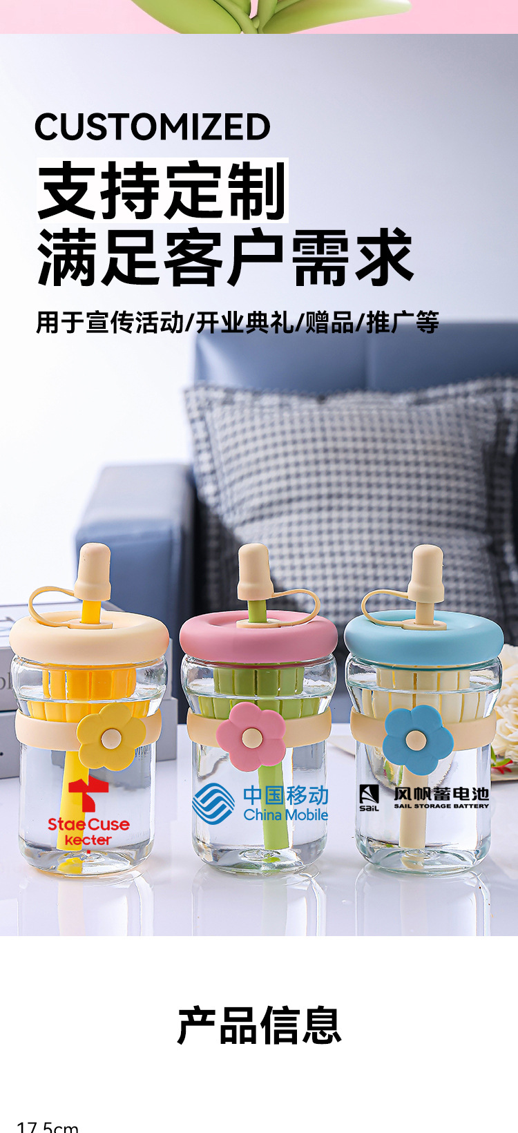 定制可爱玻璃花朵卡通茶漏冷萃花茶吸管直饮杯女学生儿童礼品水杯