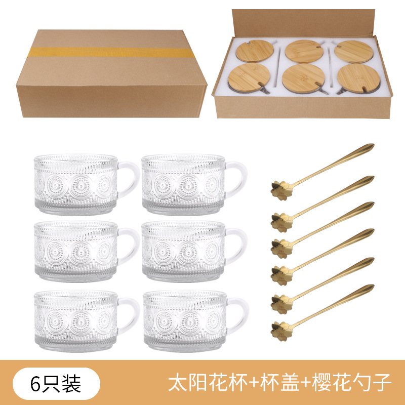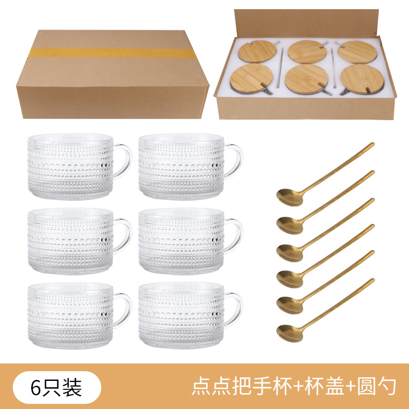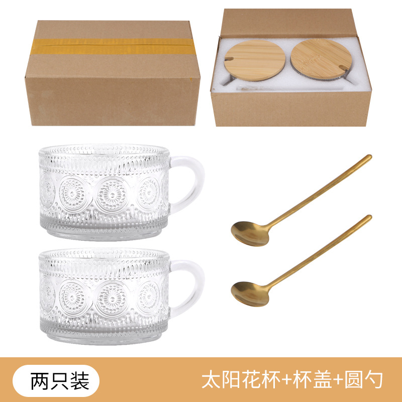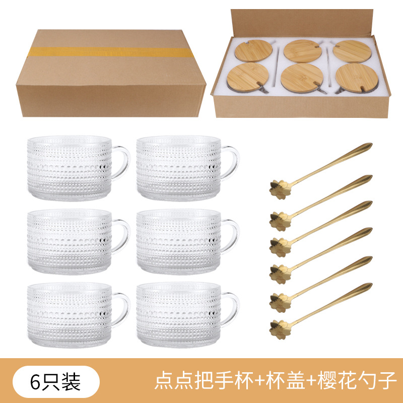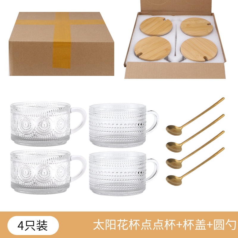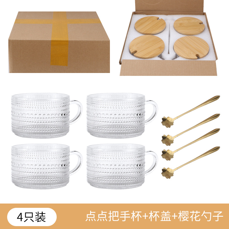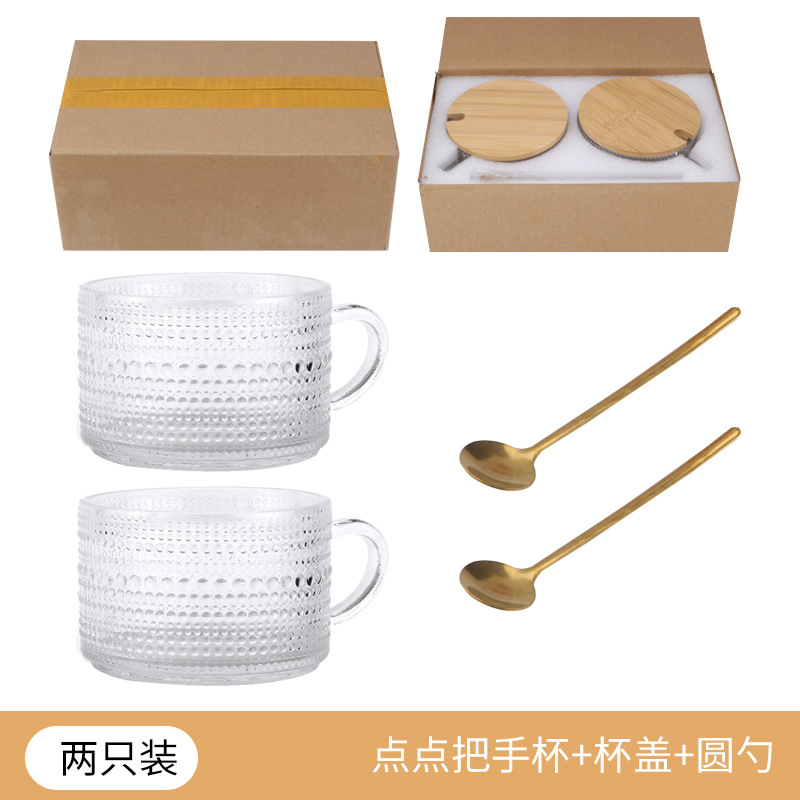 亚马逊跨境代发家用透明浮雕酸奶杯创意新款带把玻璃早餐杯燕麦杯