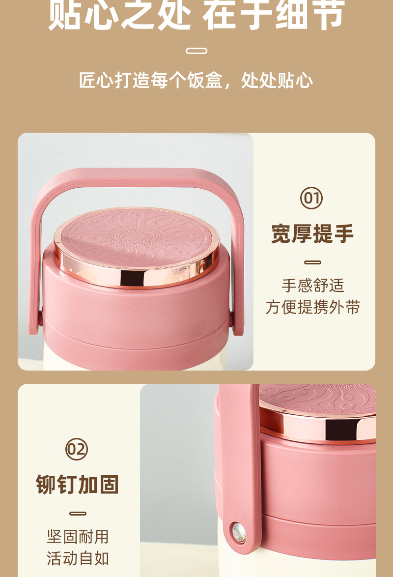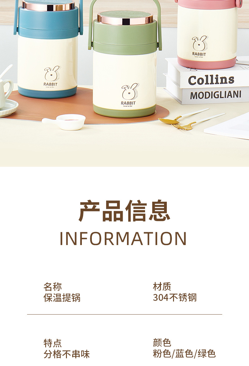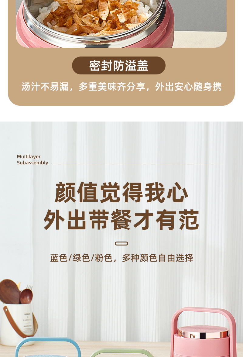批发304不锈钢保温提锅学生真空大容量保温饭盒简约多层保温桶