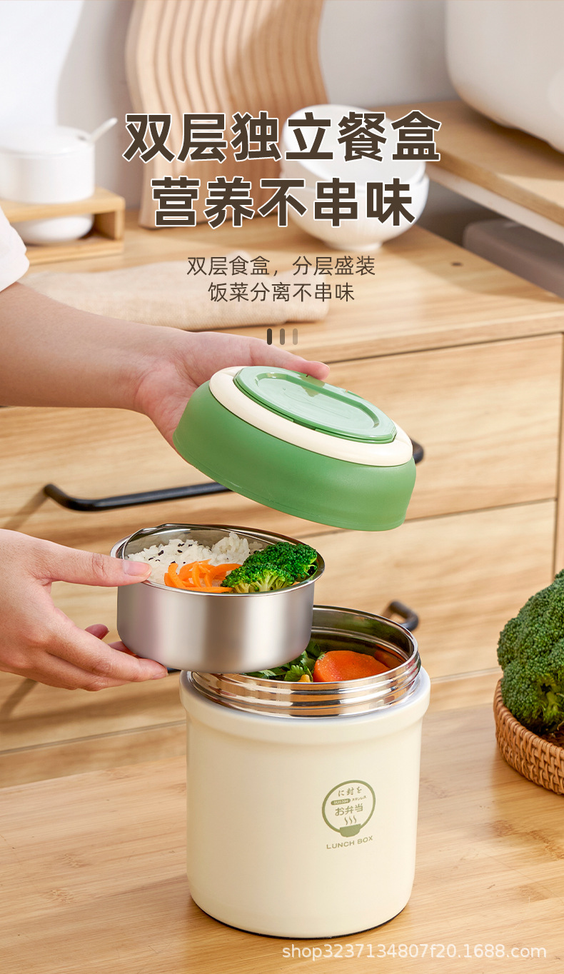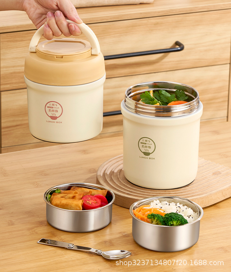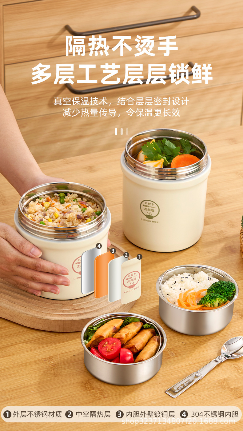 304不锈钢真空保温饭盒双层便携保温桶秋冬学生带饭提锅便携餐盒