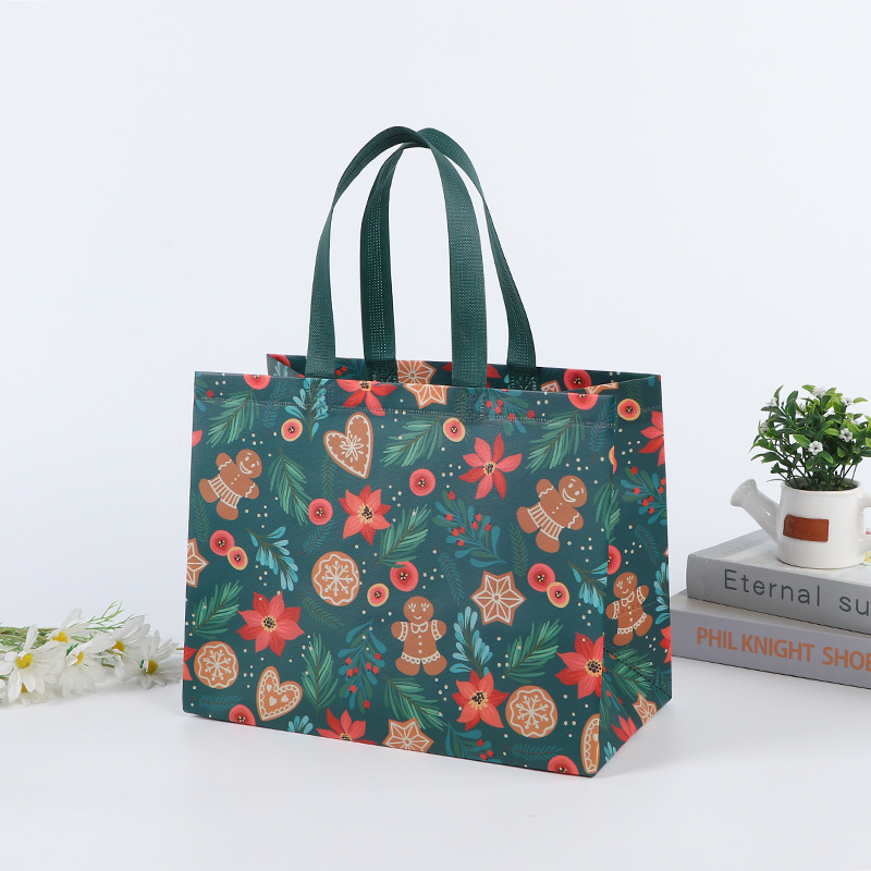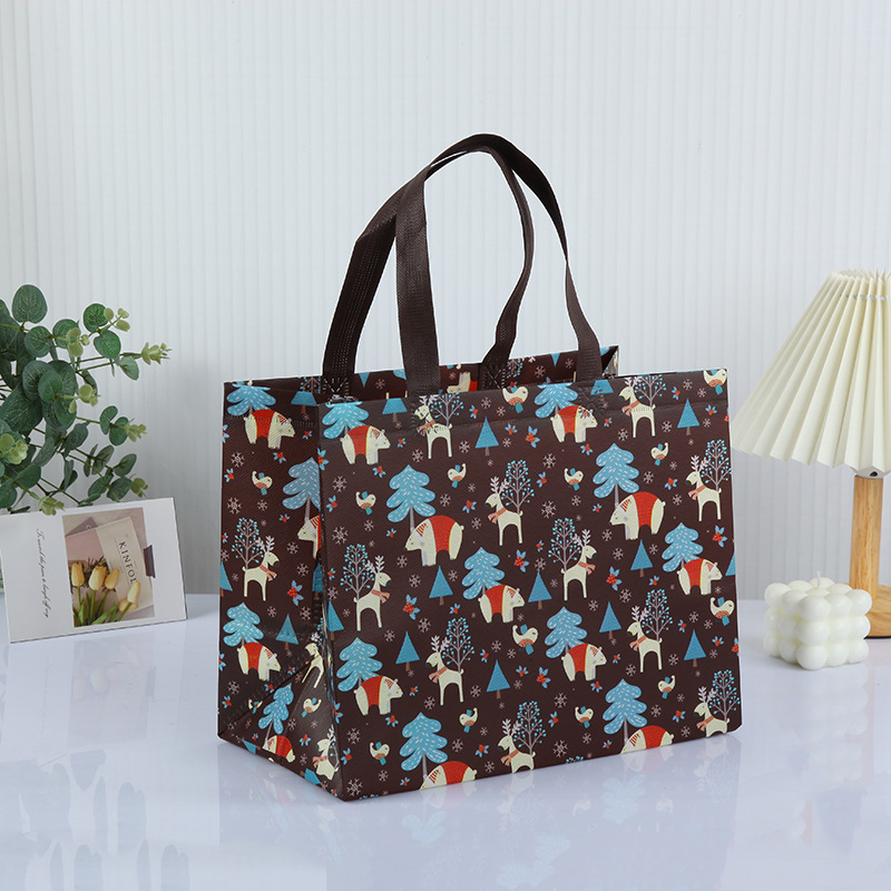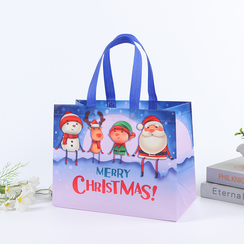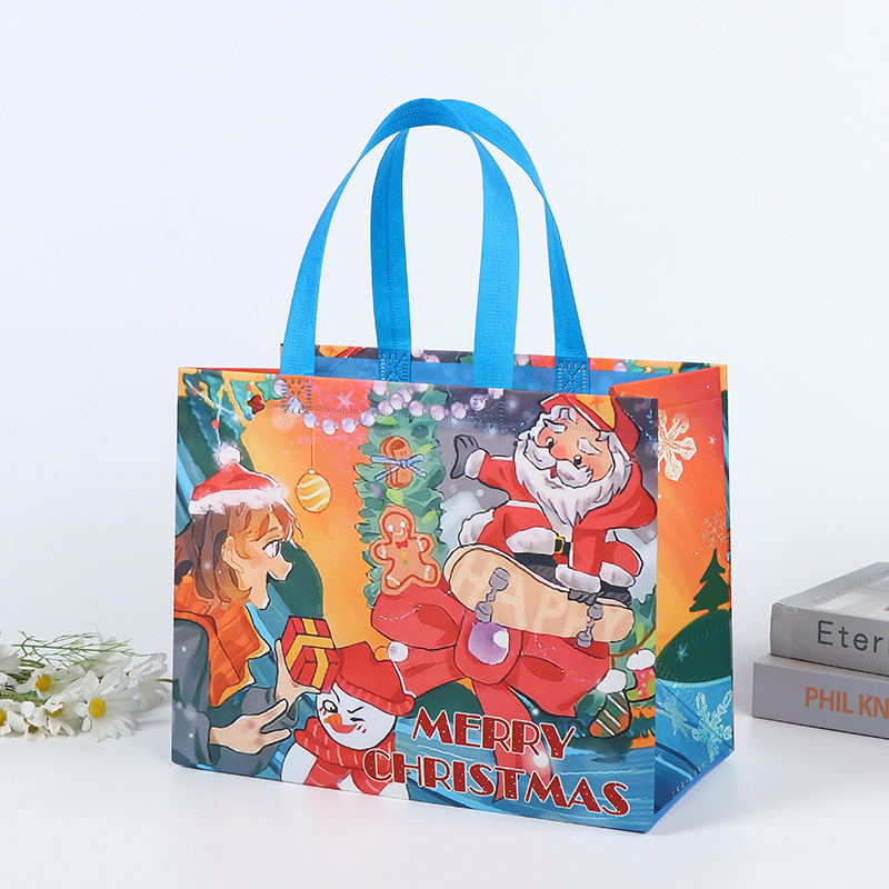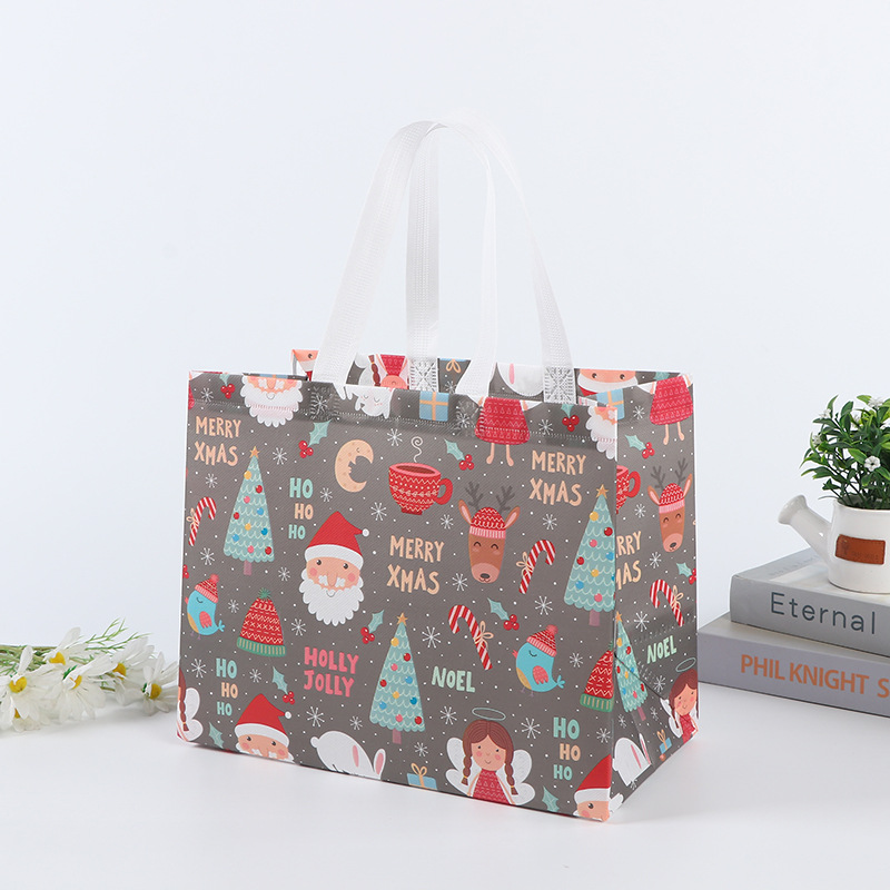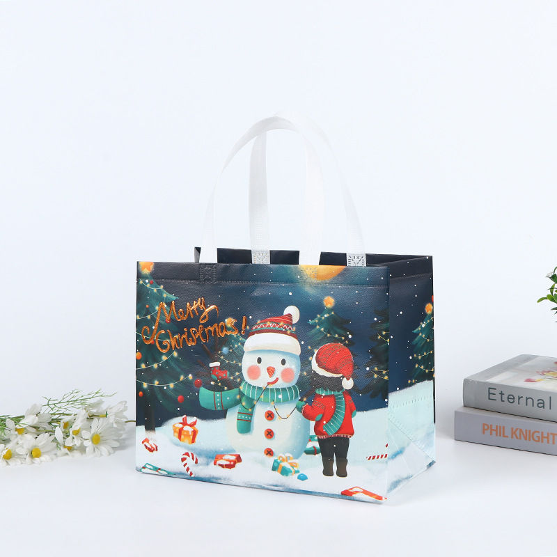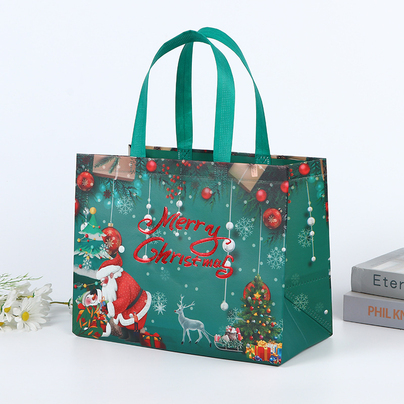 现货跨境圣诞节手提袋礼品包装袋便携折叠烫金覆膜无纺布袋定制