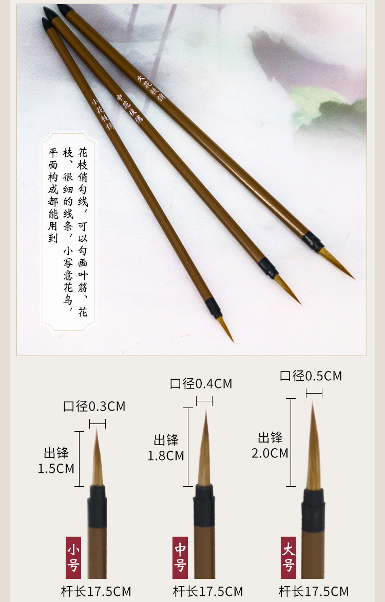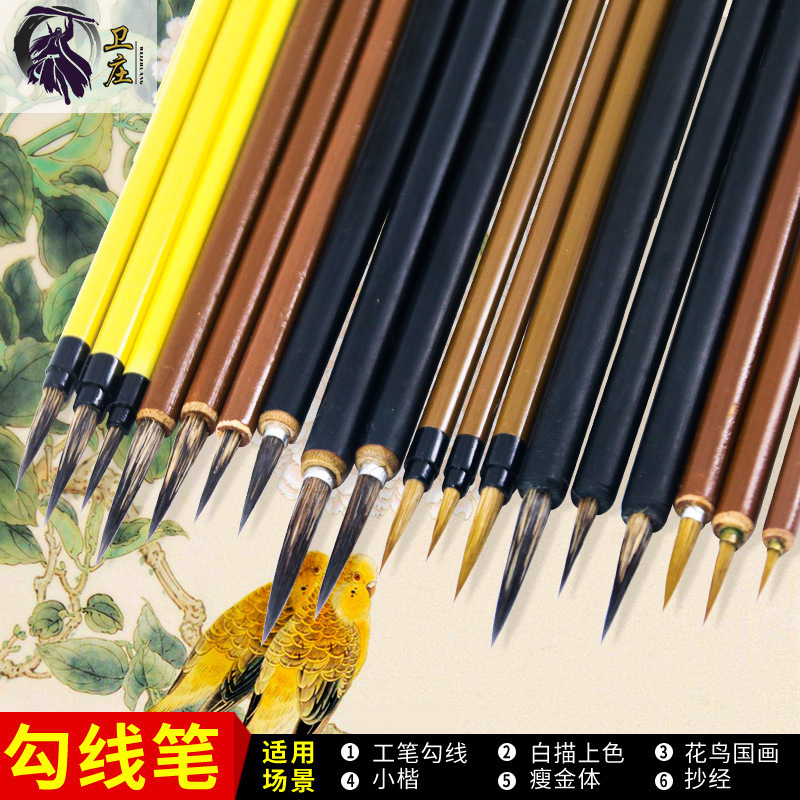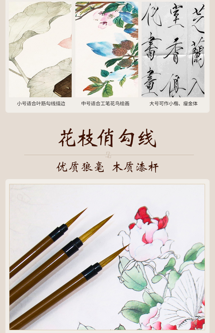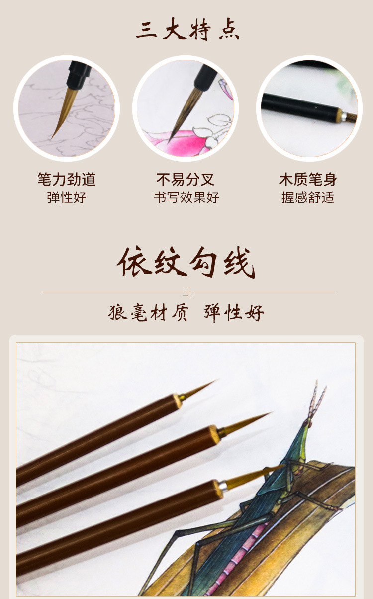 工笔画勾线笔狼毫国画专用毛笔花鸟描线笔描边鼠须花枝俏依纹毛笔