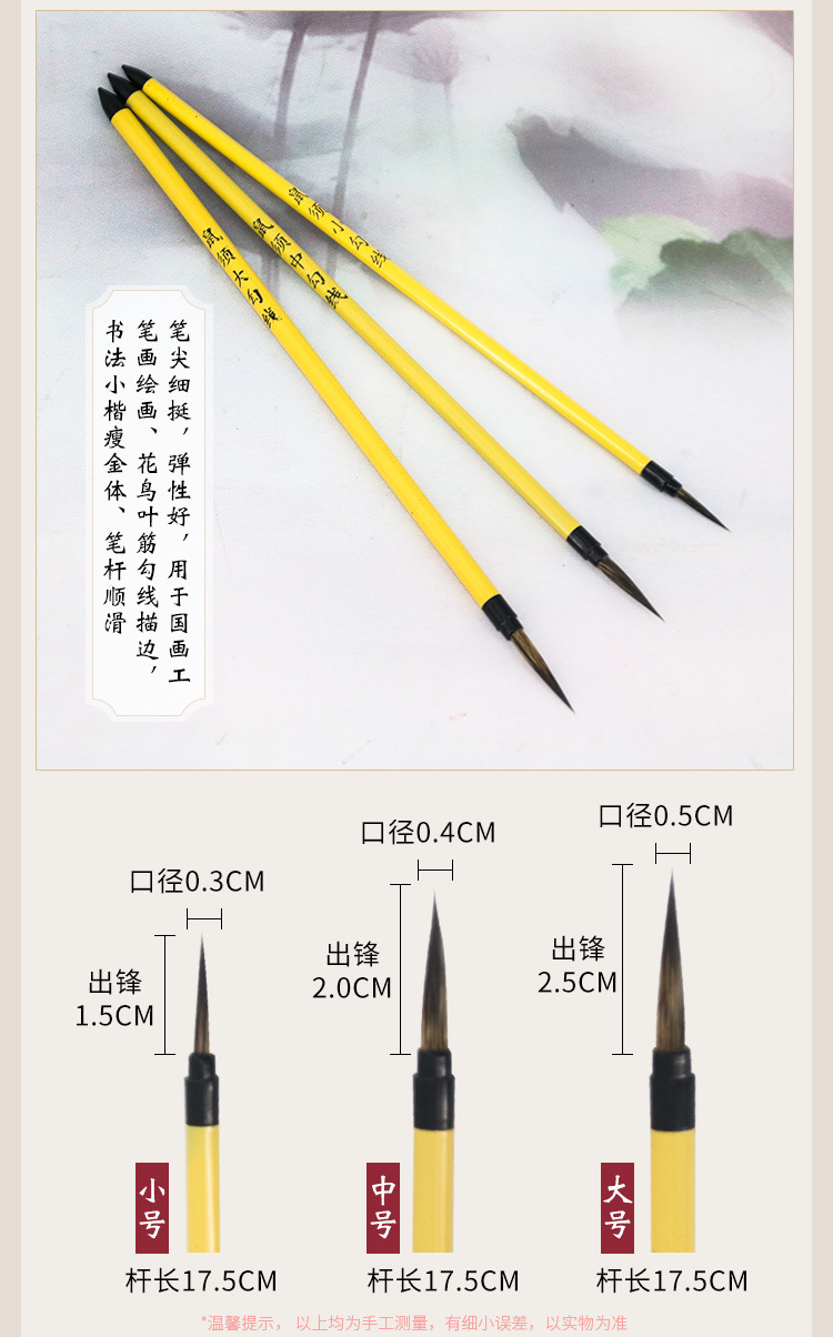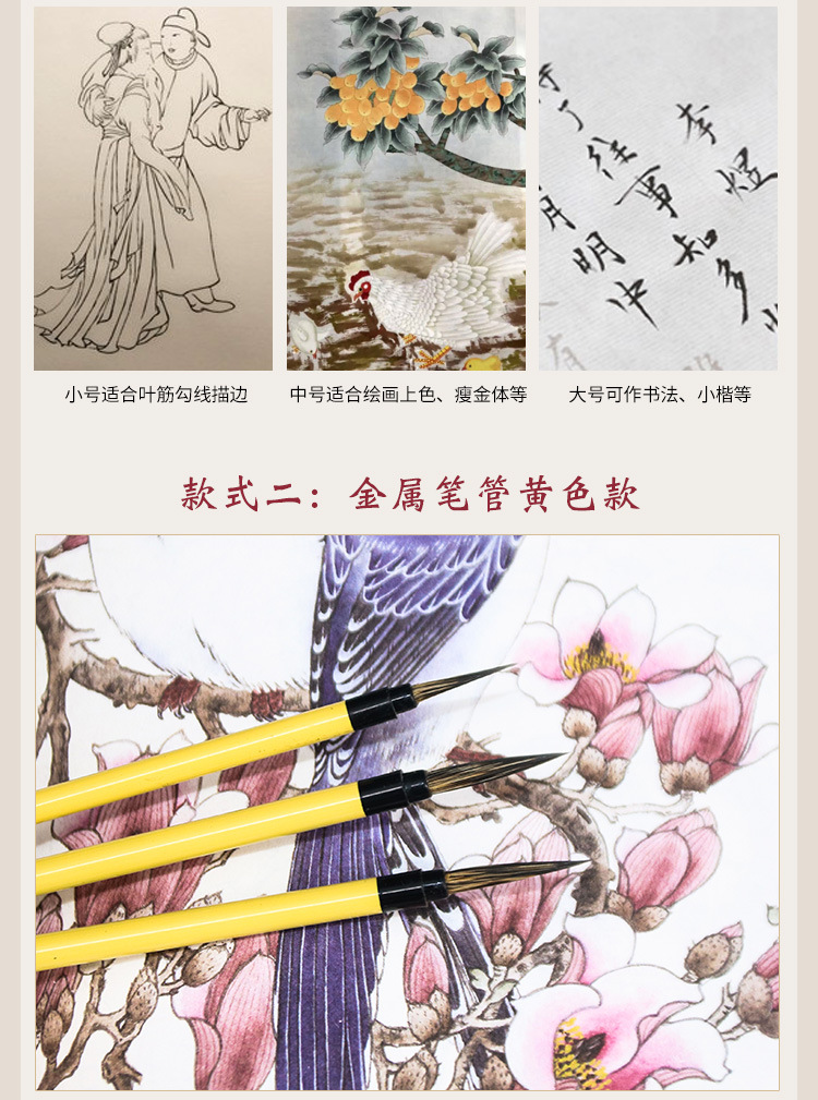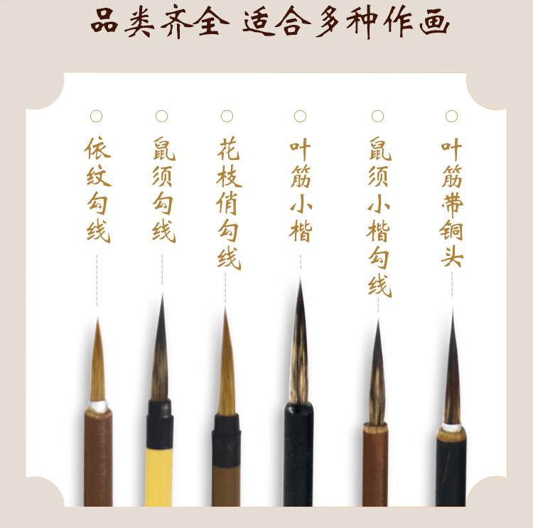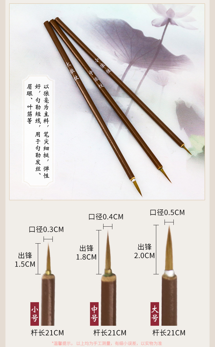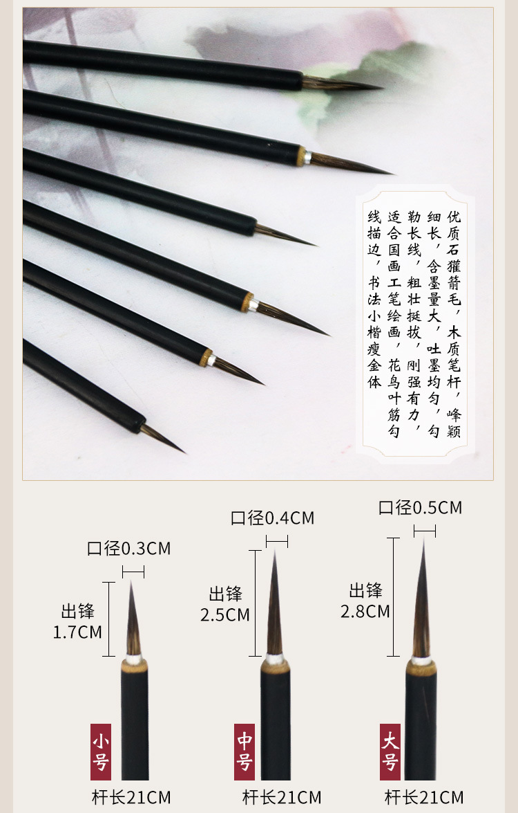 工笔画勾线笔狼毫国画专用毛笔花鸟描线笔描边鼠须花枝俏依纹毛笔