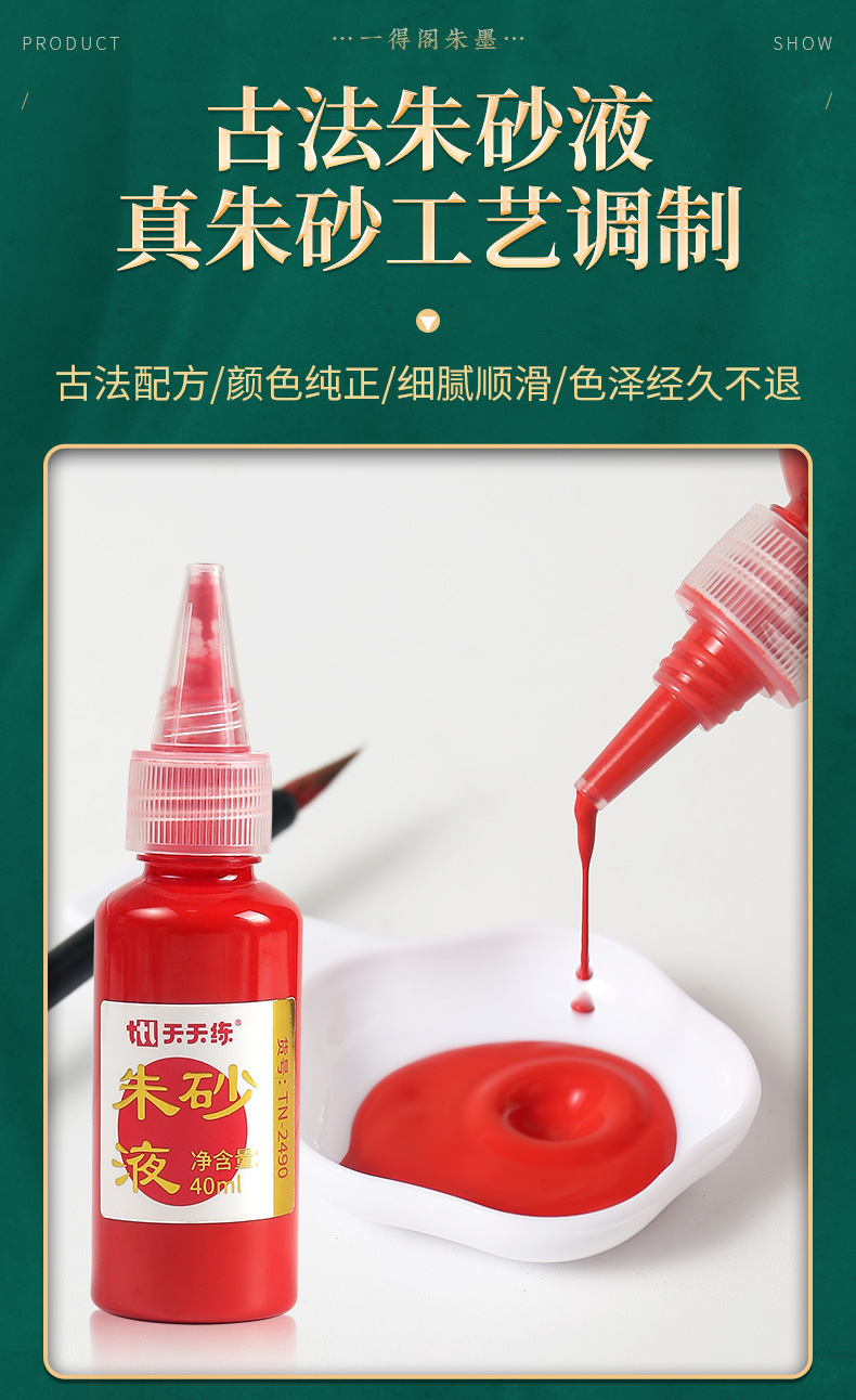 纯正朱砂液40ml道家专用抄经黄纸朱砂墨毛笔书法练习套装