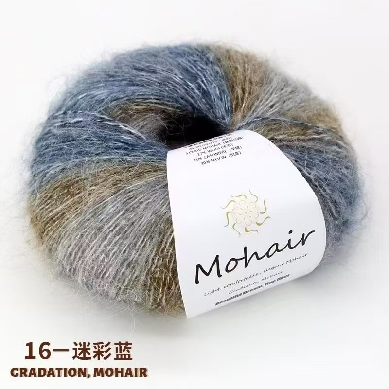 真丝渐变段染马海毛手工编织糖果彩色毛线超柔长绒亮丝毛线团