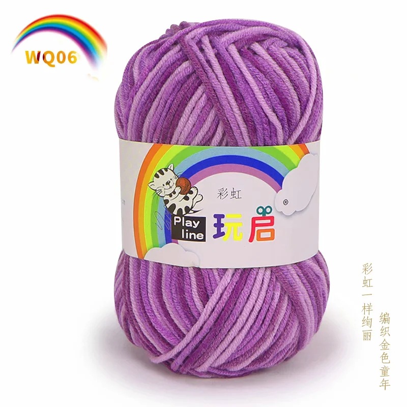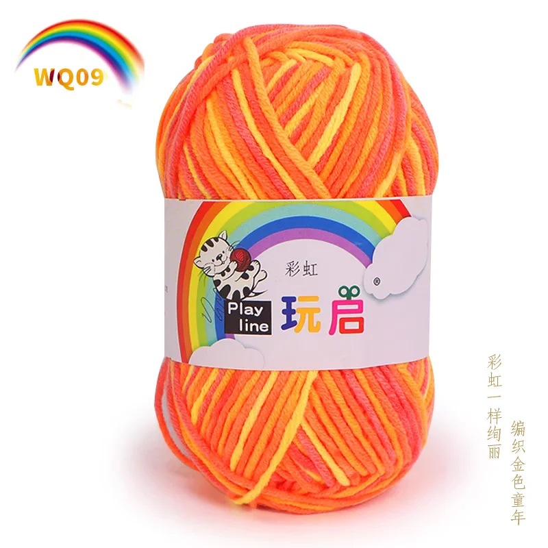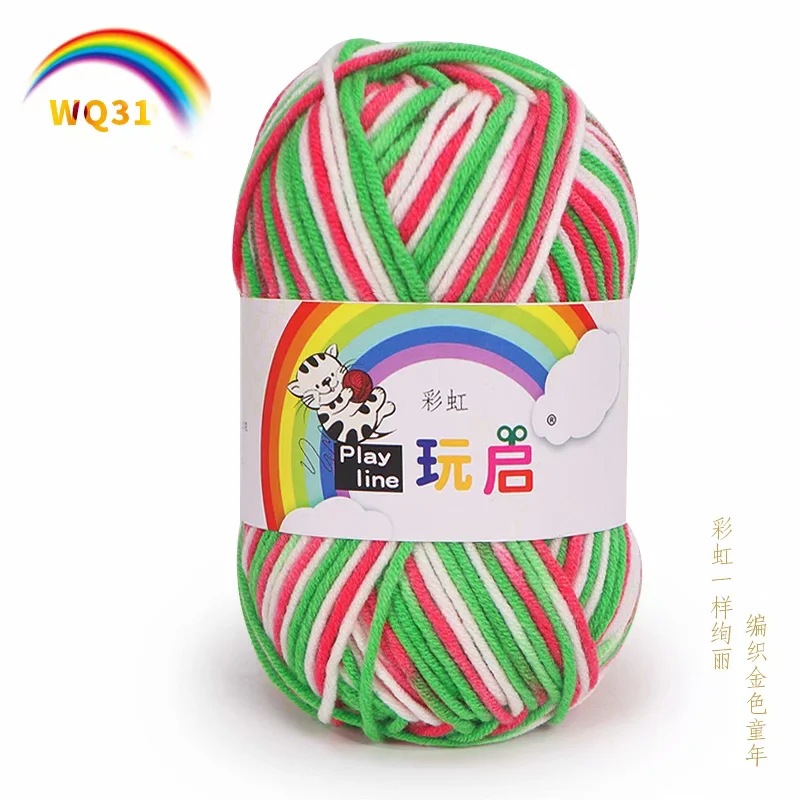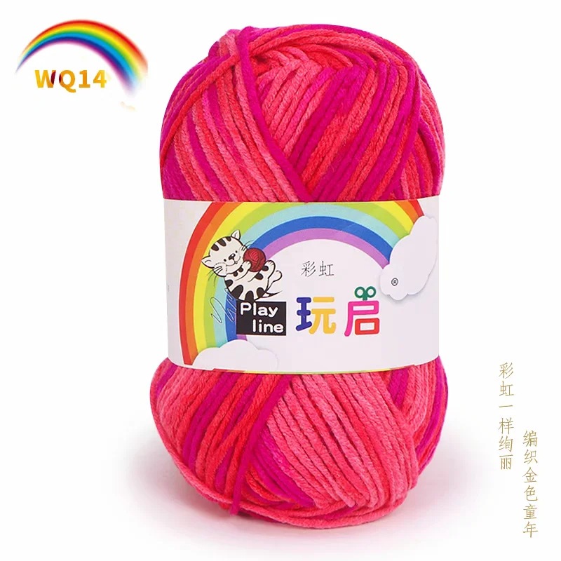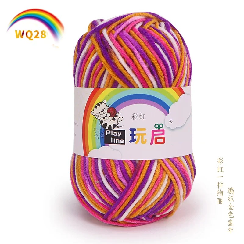 玩启彩虹线5股牛奶棉毛线五股段染毛线团手工钩针围巾线厂家批发