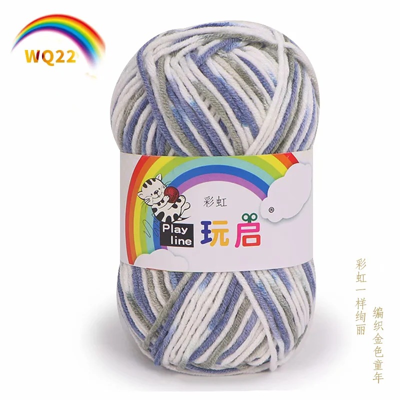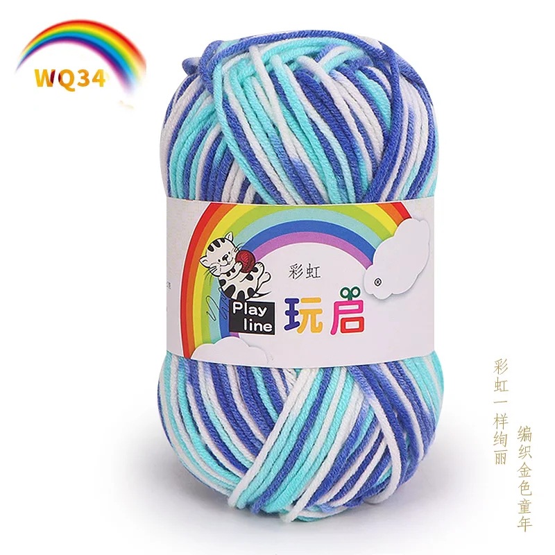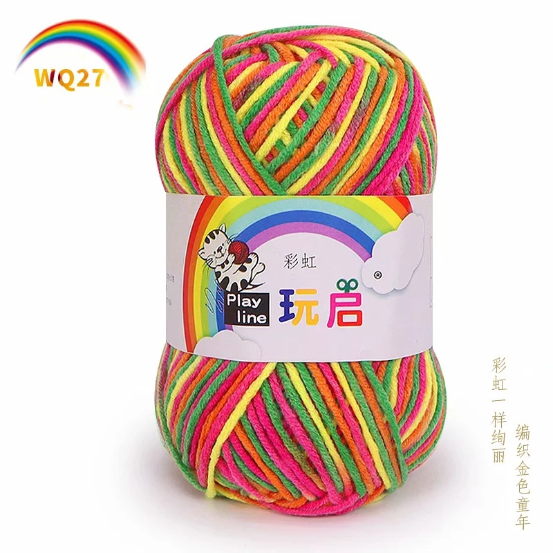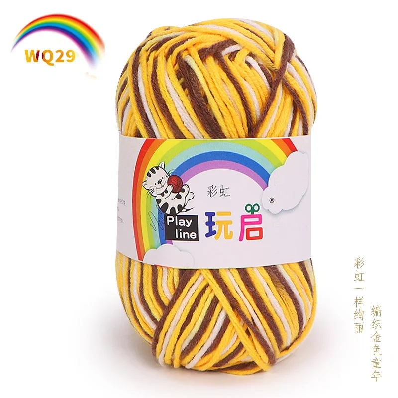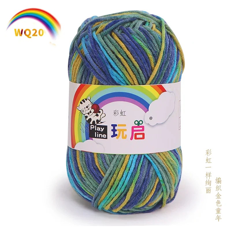 玩启彩虹线5股牛奶棉毛线五股段染毛线团手工钩针围巾线厂家批发