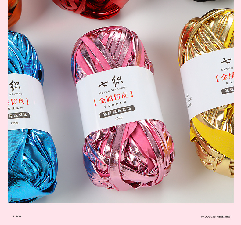 厂家批发仿皮毛线团金属亮面个性毛线彩色布条线手工编织纺纱配件