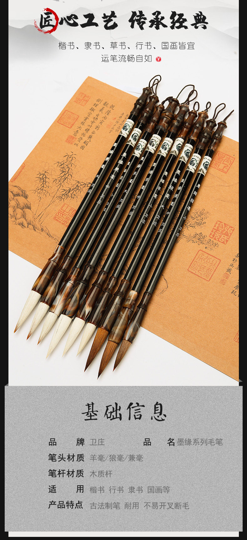 国画书法练字毛笔狼毫兼毫羊毫初学者文房四宝实木杆白云练习毛笔