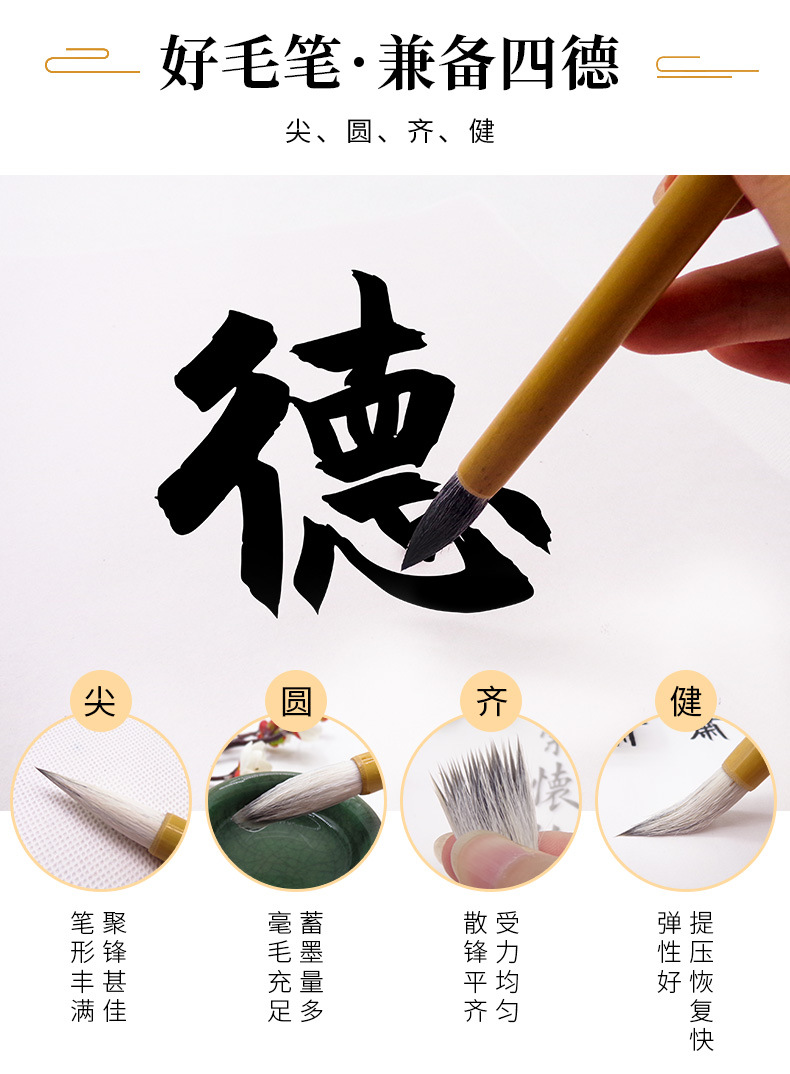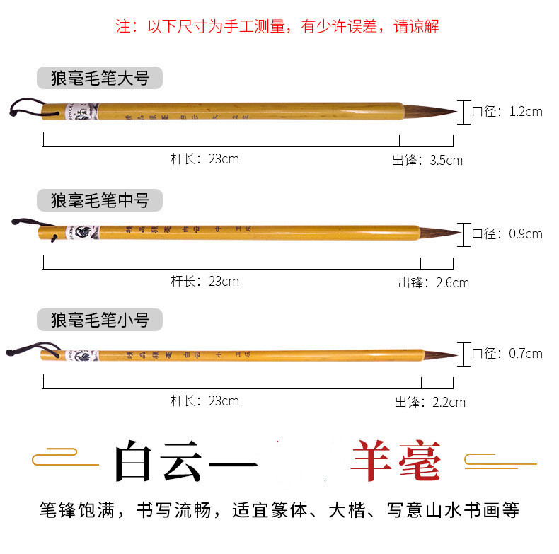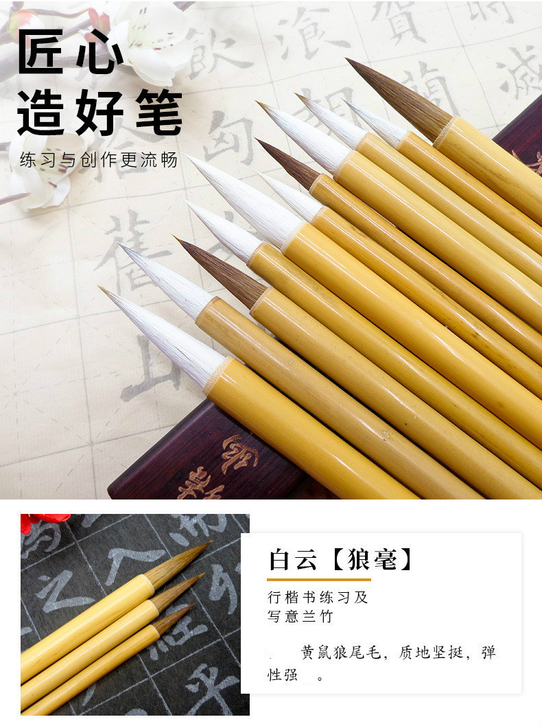 厂家批发白云毛笔狼毫学生毛笔批发初学者白云毛笔狼毫毛笔