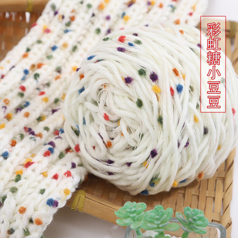 2022新品彩虹豆豆线围巾线手工编织diy彩虹糖手混线厂家批发毛线