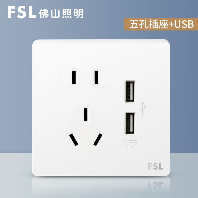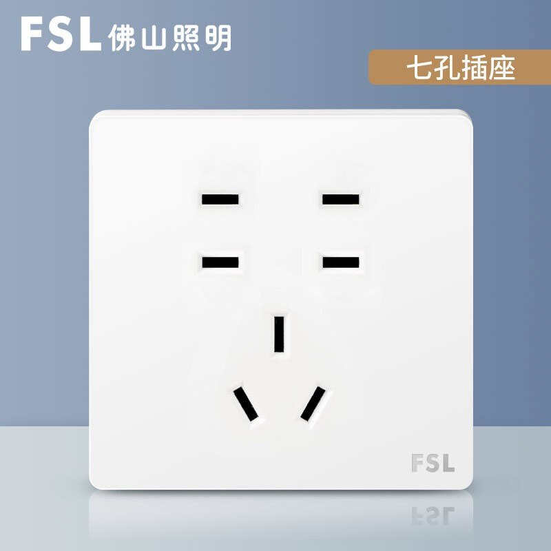 FSL佛山照明 家居开关插座86型墙壁面板二三插五孔插多孔套装F