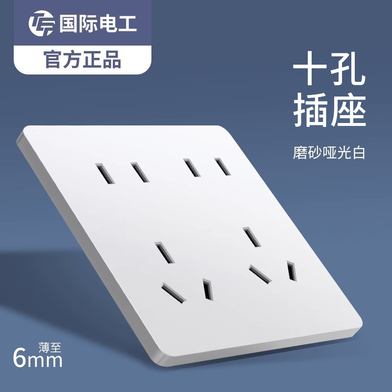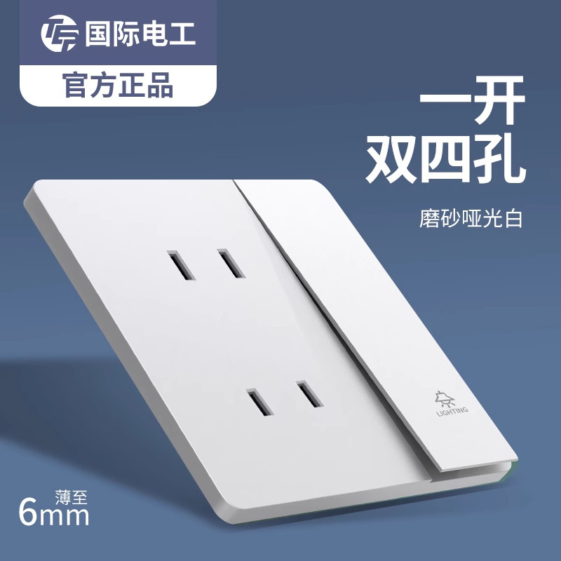 tep国际电工86型墙壁插座带开关面板超薄哑光白色一开五孔奶油风