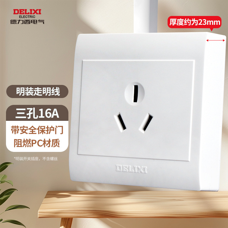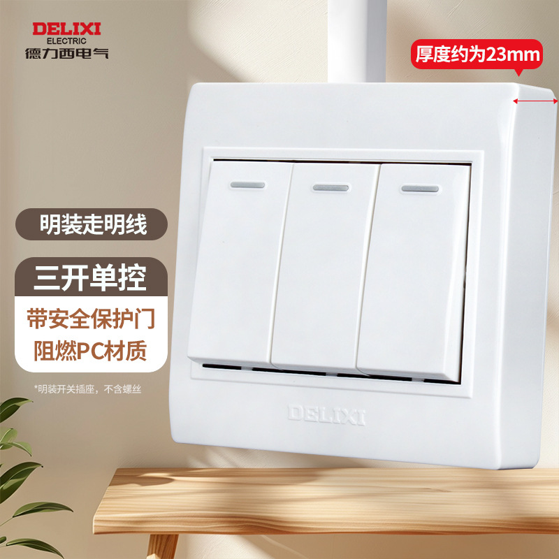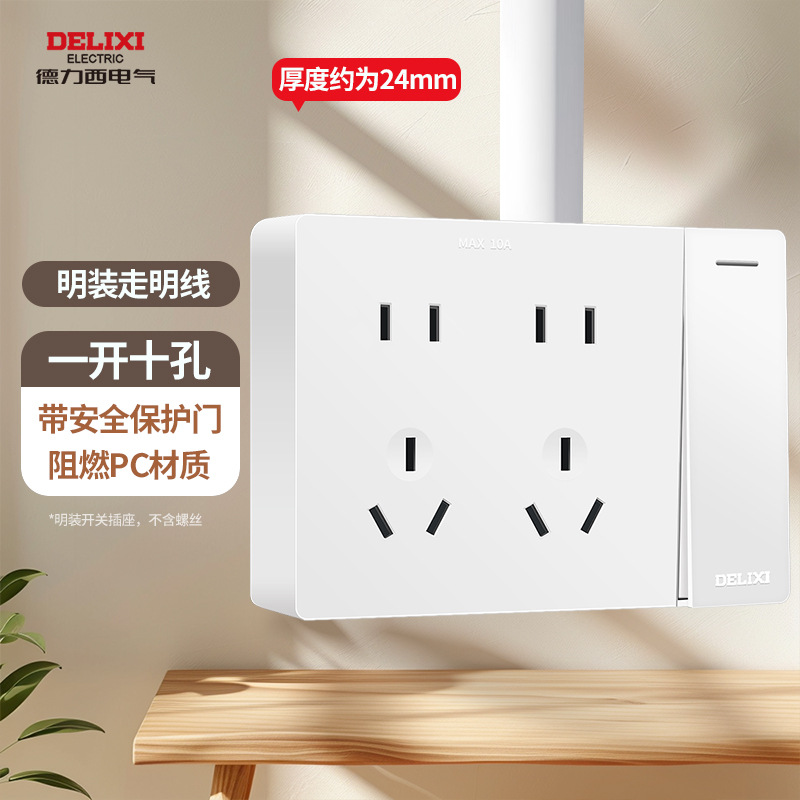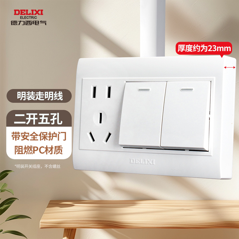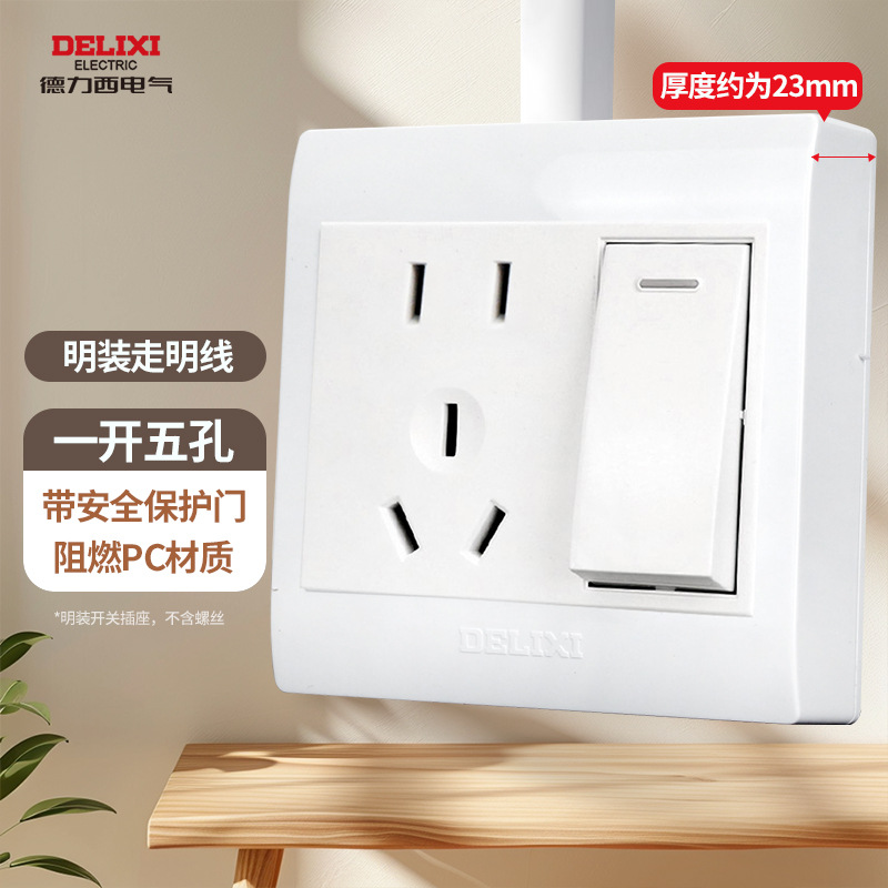 德力西明装开关插座明五孔墙壁面板走明线盒超薄十四5孔无需底盒