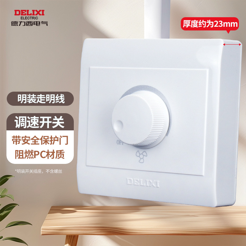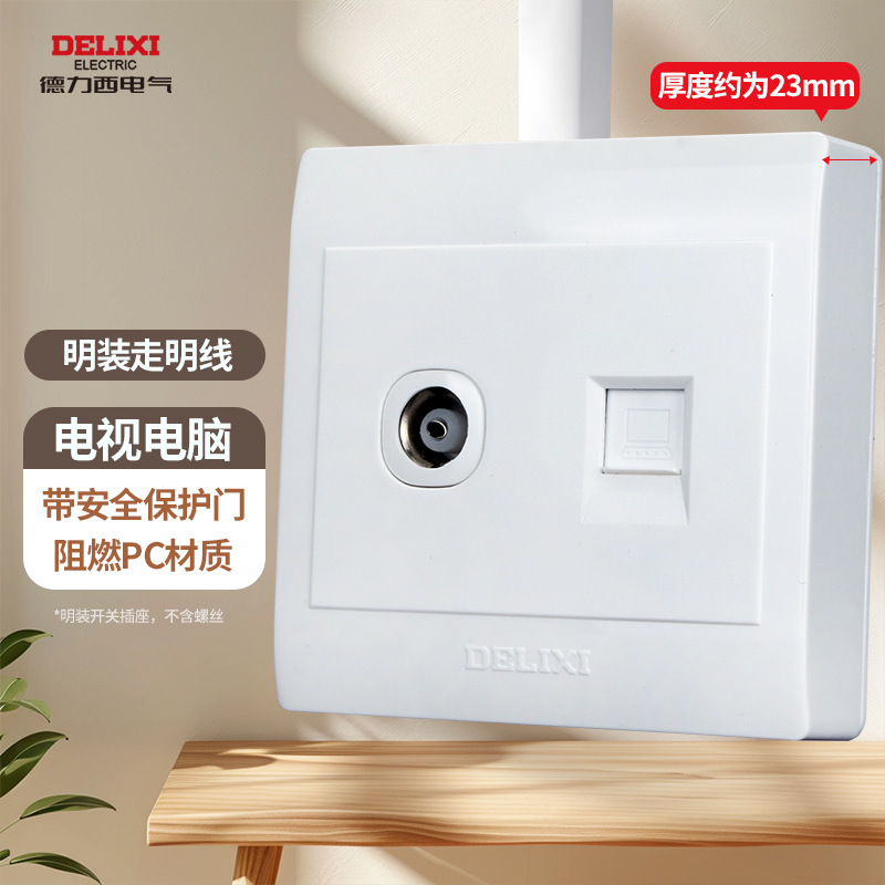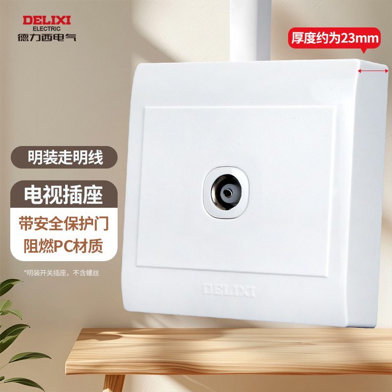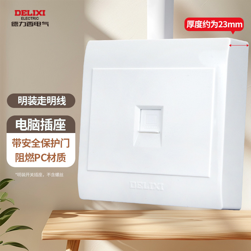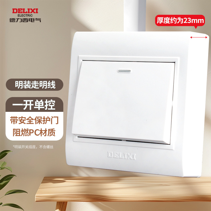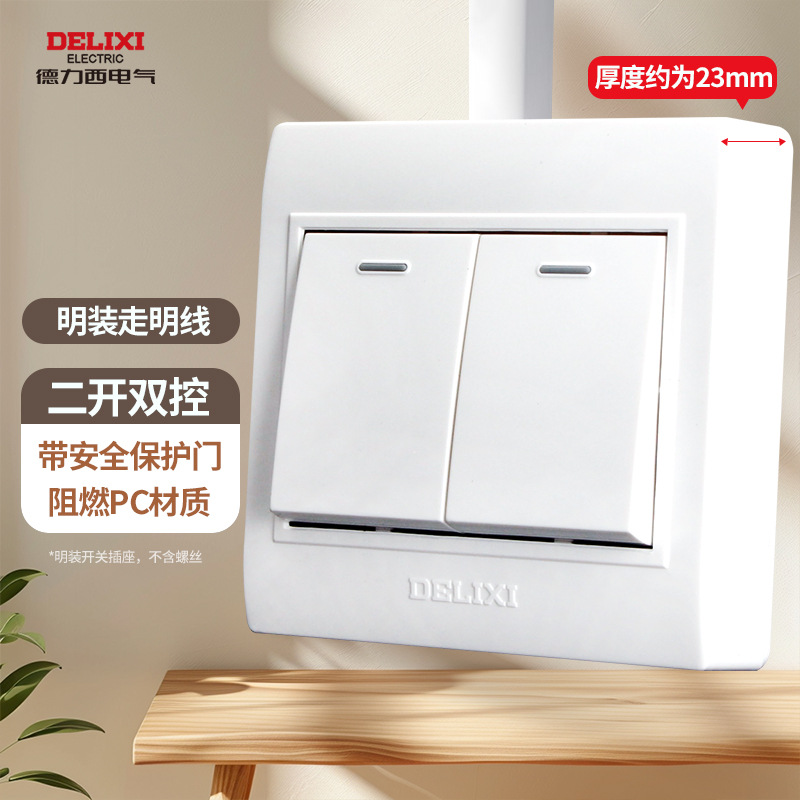 德力西明装开关插座明五孔墙壁面板走明线盒超薄十四5孔无需底盒