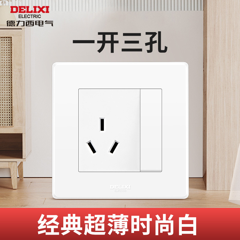 德力西墙壁开关插座86型白色空调16A三孔 五孔带USB面板暗装多孔