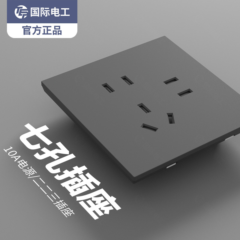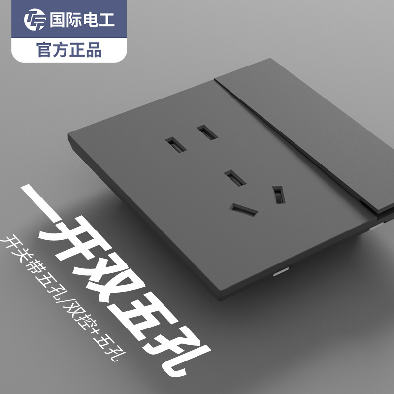 国际电工超薄开关墙壁插座正品超薄大板面板家用86型暗装星空灰