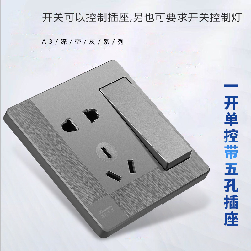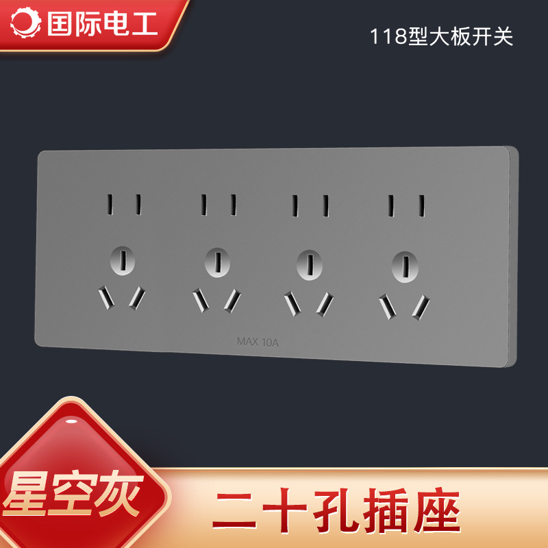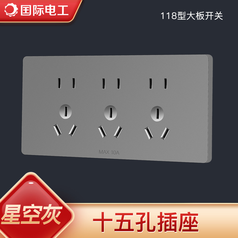 暗装家用86型墙壁开关插座国际电工灰色五孔插座厂家现货批发面板