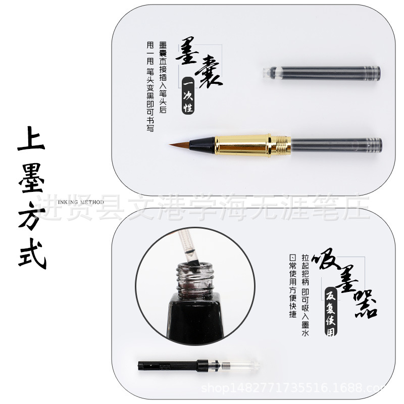 钢笔式毛笔小楷软头抄经书法笔纯狼毫学生便携自带墨水秀丽笔批发