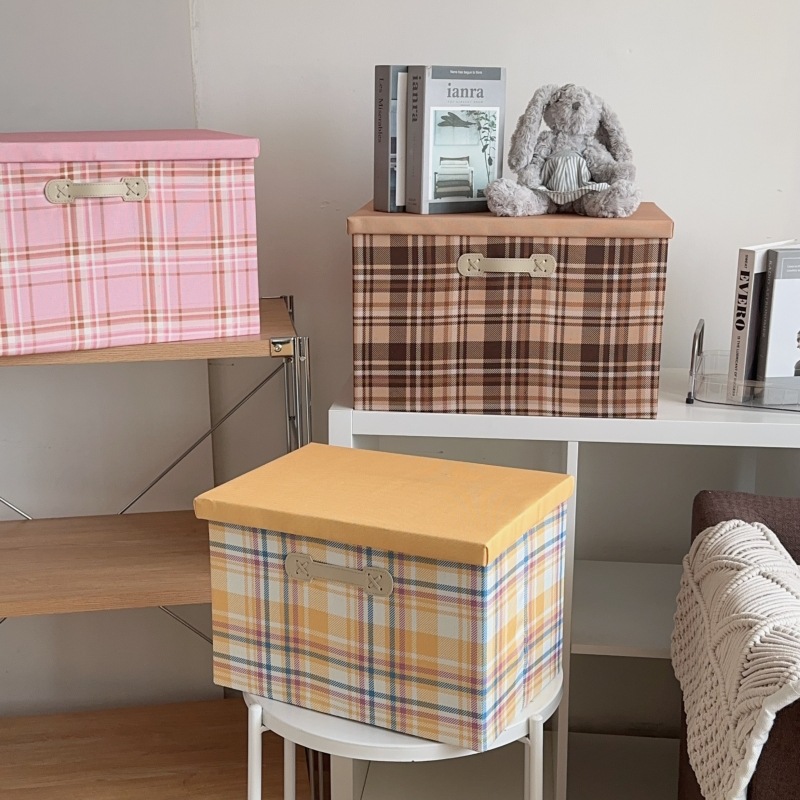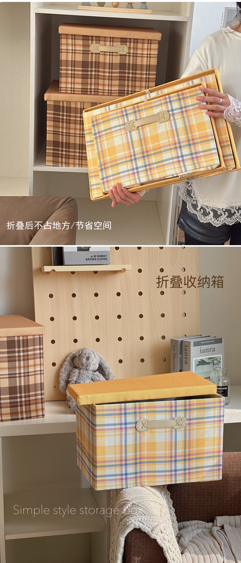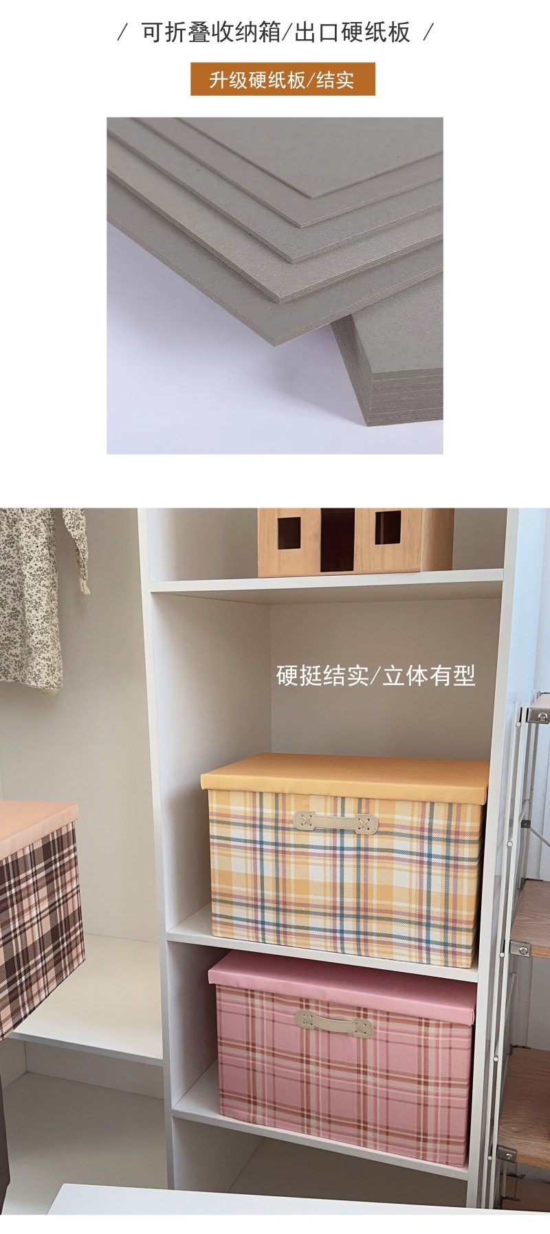 格子折叠收纳箱大容量布艺衣柜衣物整理筐书本收纳盒后备箱储物箱
