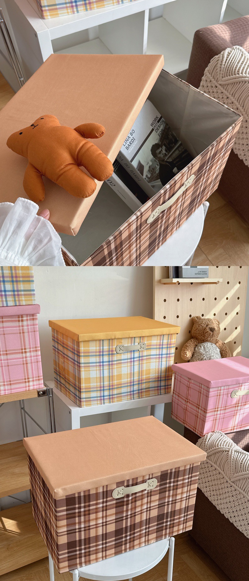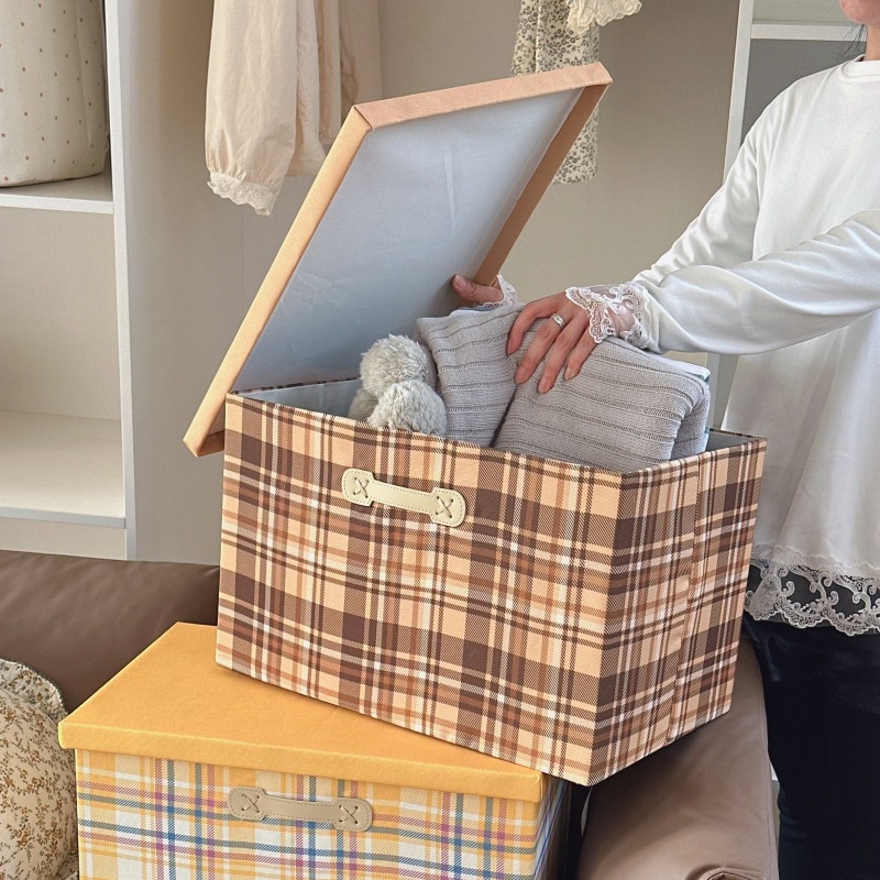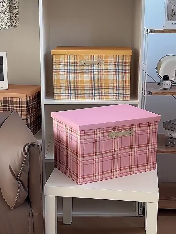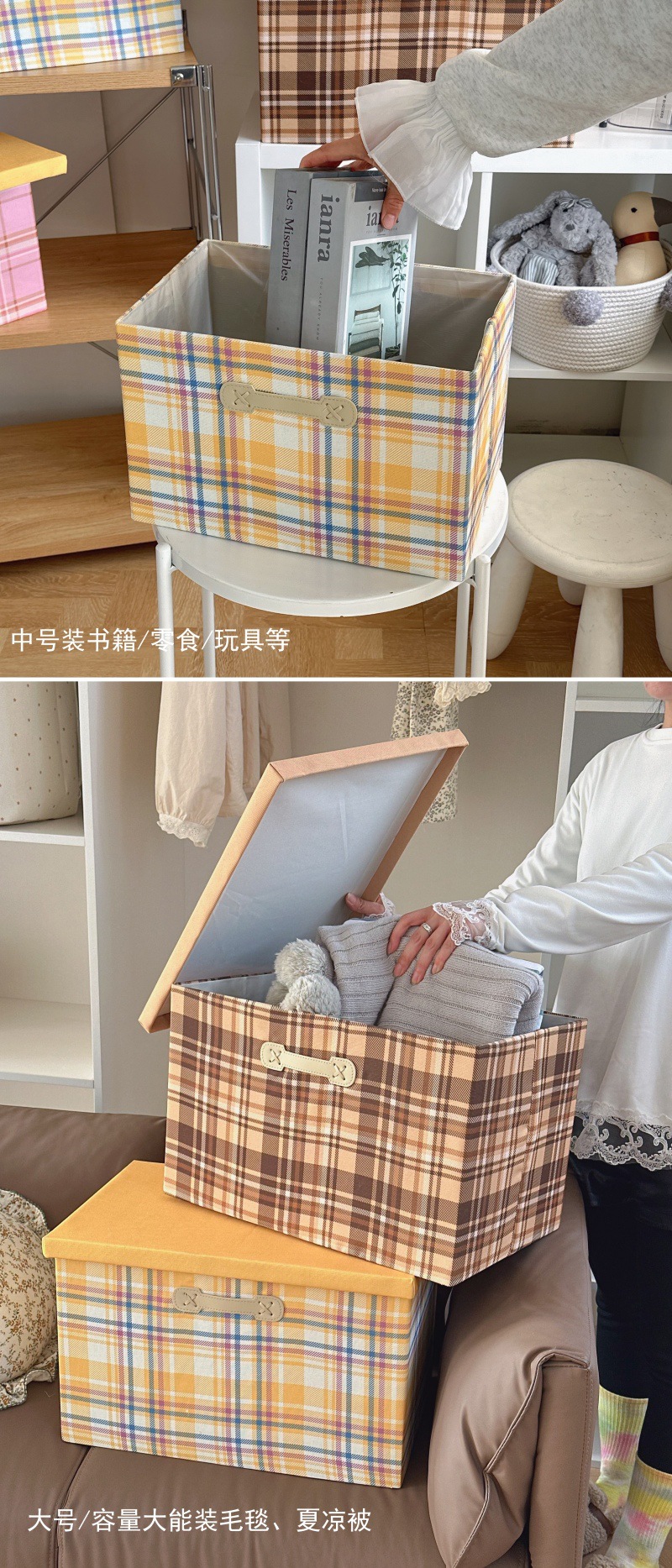 格子折叠收纳箱大容量布艺衣柜衣物整理筐书本收纳盒后备箱储物箱