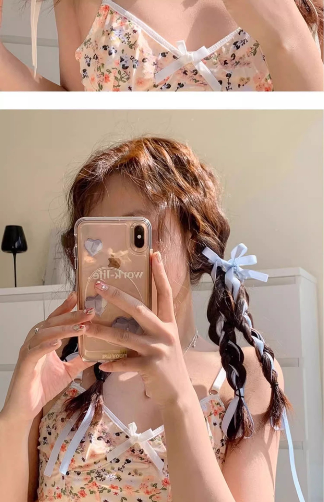 丝带蝴蝶结发夹绑发带甜美少女侧边发饰编发夹双马尾头饰抓夹飘带