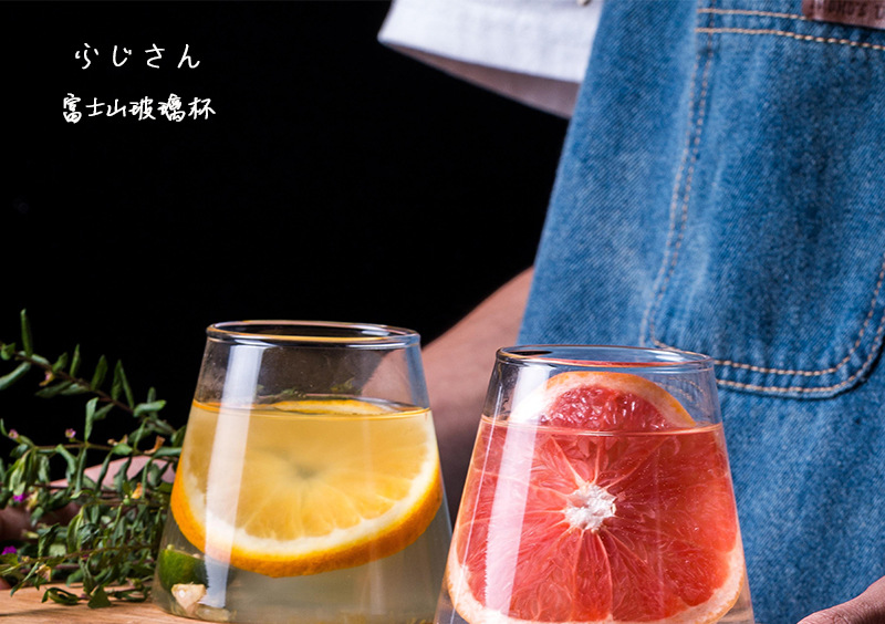 ins创意富士山玻璃杯网红水杯喝茶杯酒杯果汁杯饮料杯子厂家批发