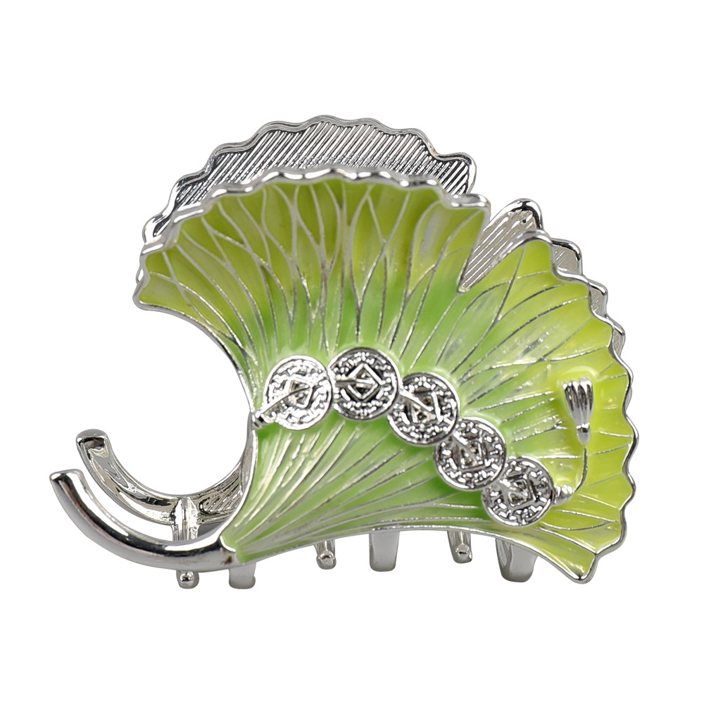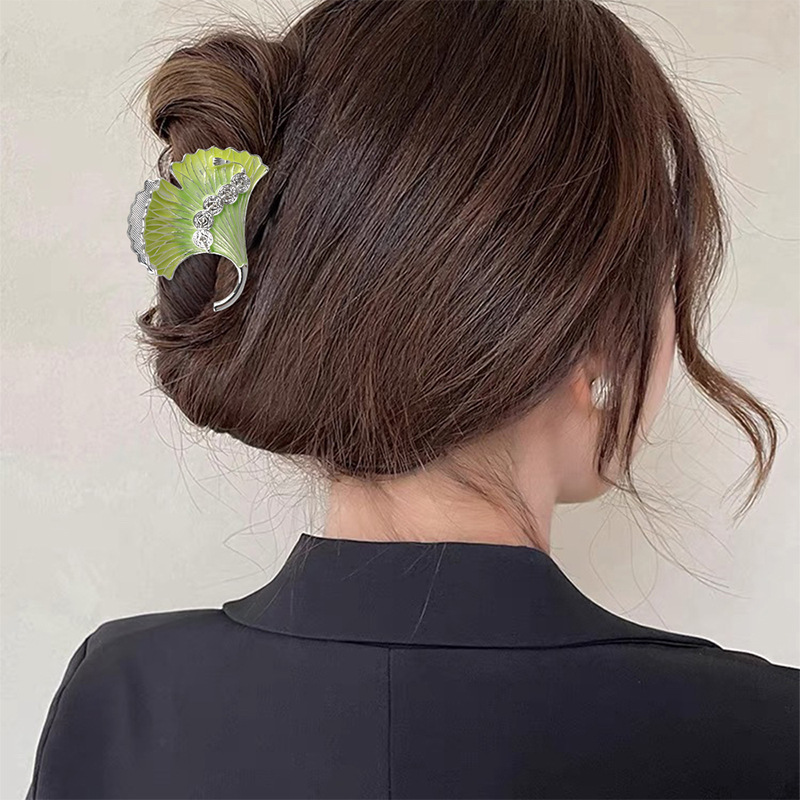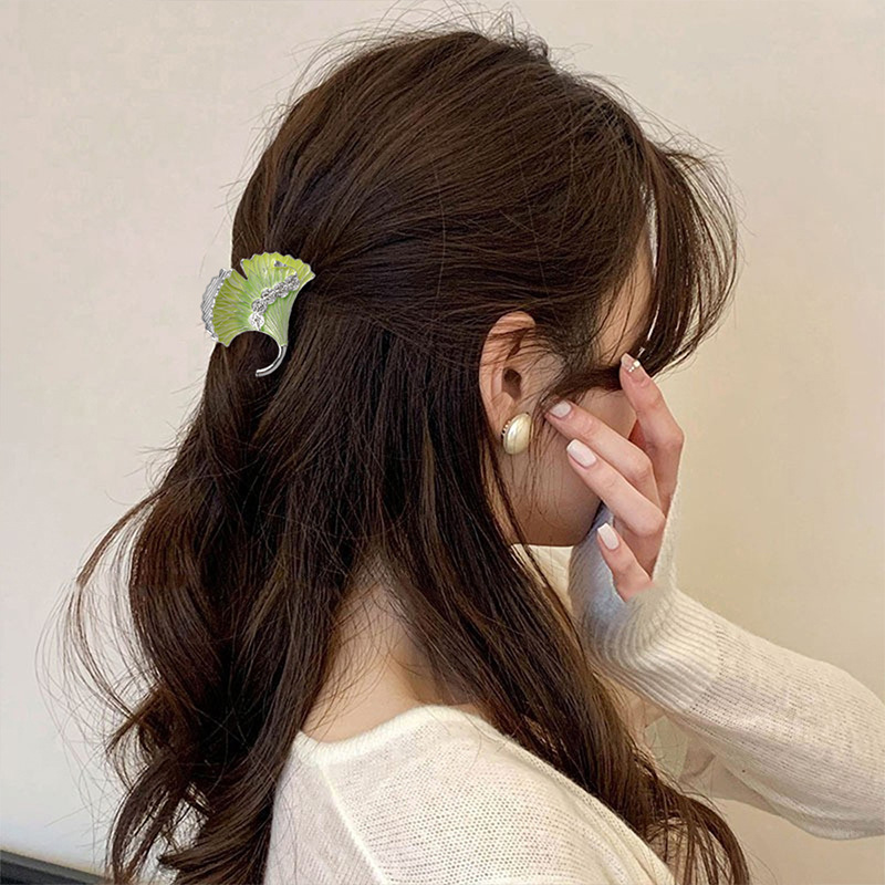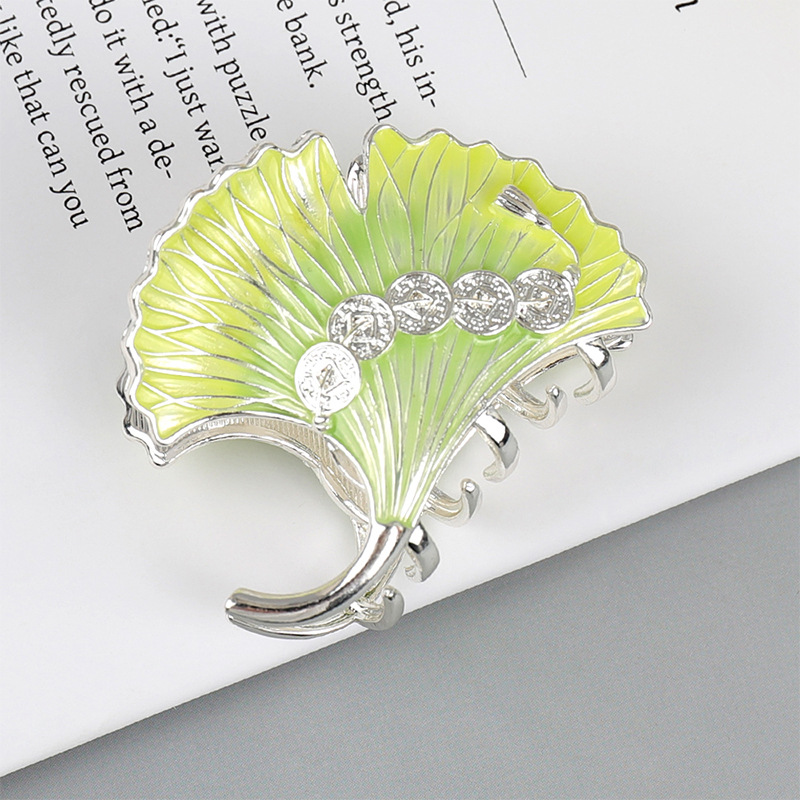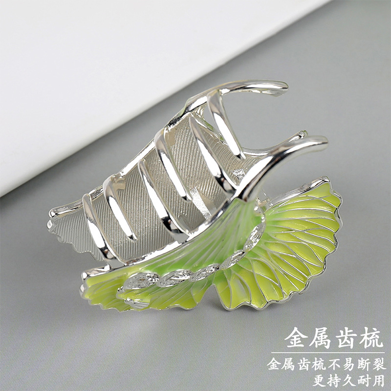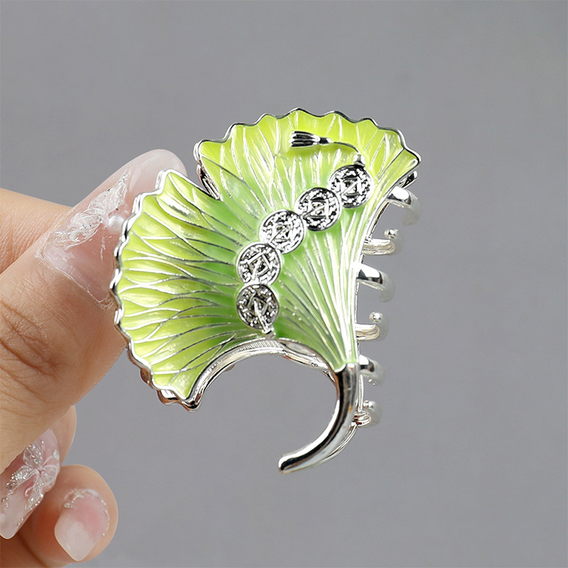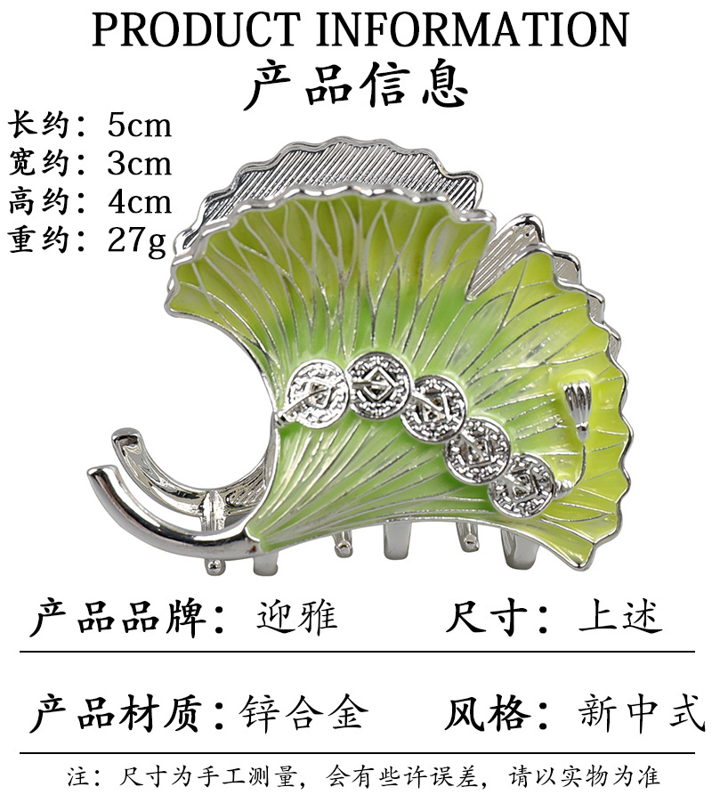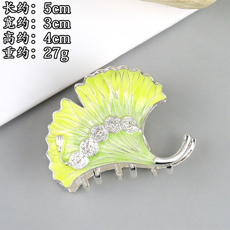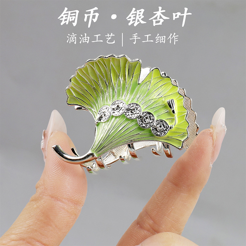 银色五帝钱森系银杏叶发夹抓夹女小众设计高级感后脑勺发抓鲨鱼夹