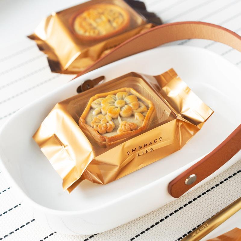 广式月饼机封袋50克80g高档蛋黄酥袋金色方框中秋月饼包装袋流心